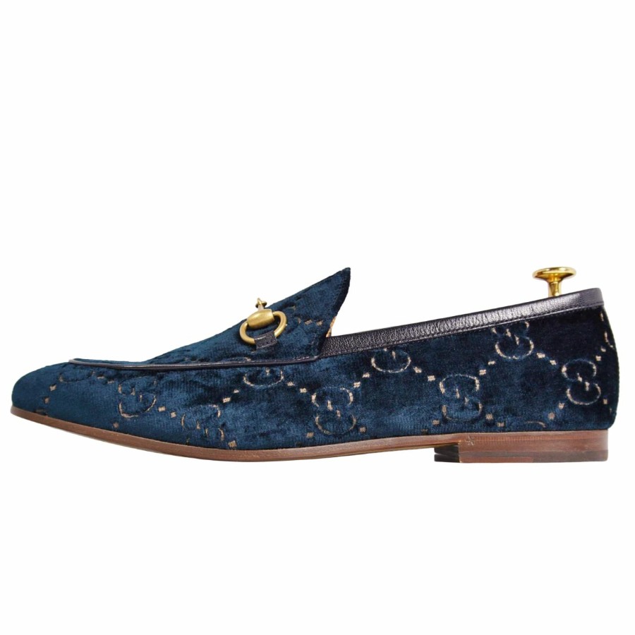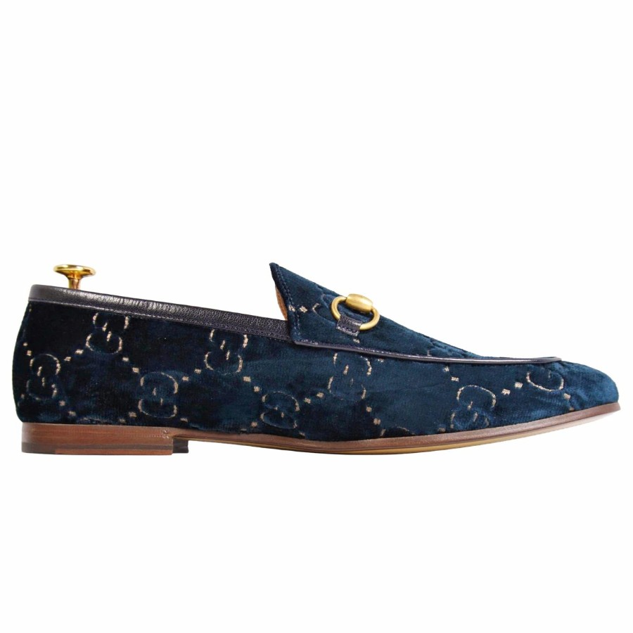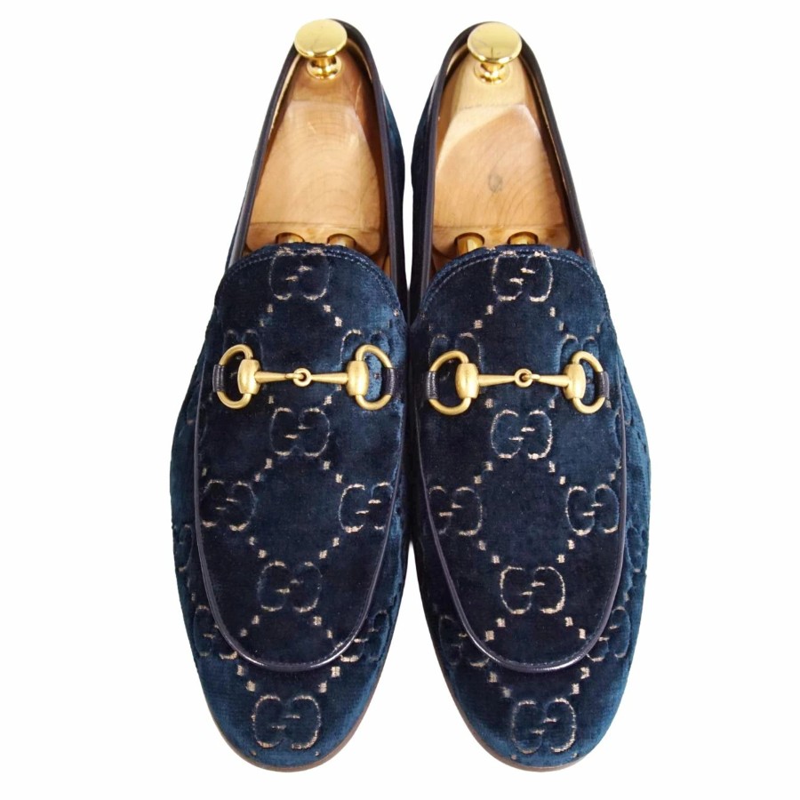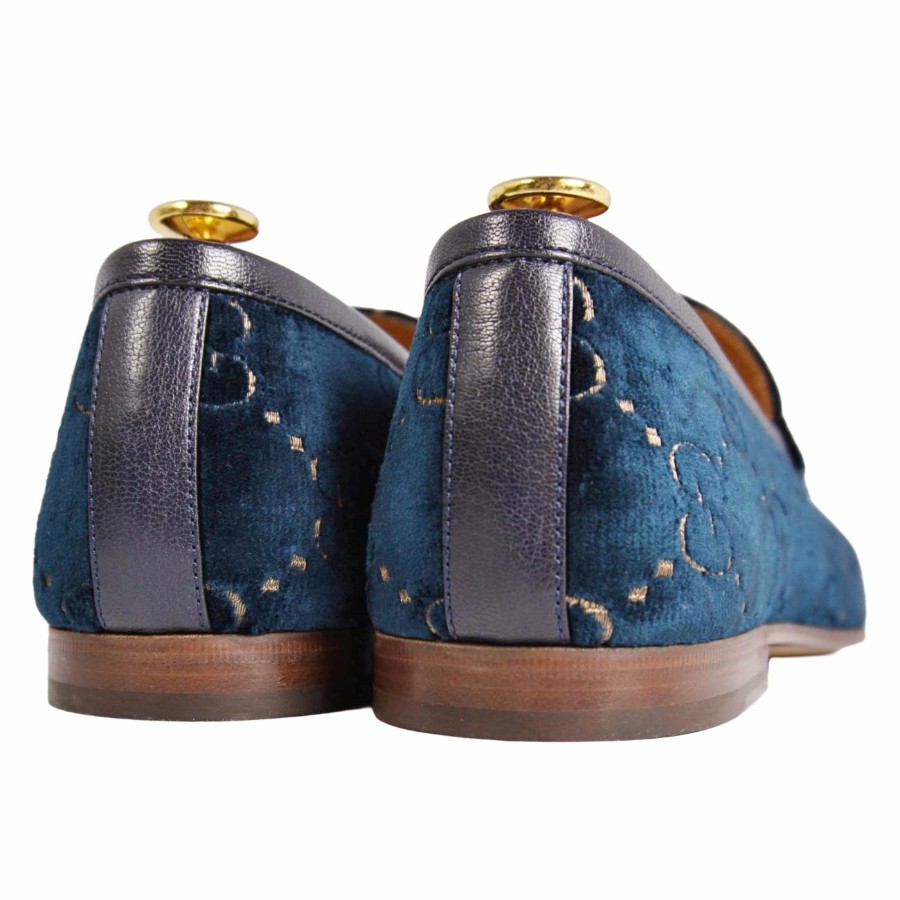 グッチ GUCCI ローファー ヨルダーン モカシン ホースビット ベロア GG柄 シューズ 靴 メンズ イタリア製 ブルー サイズ10(29cm相当)