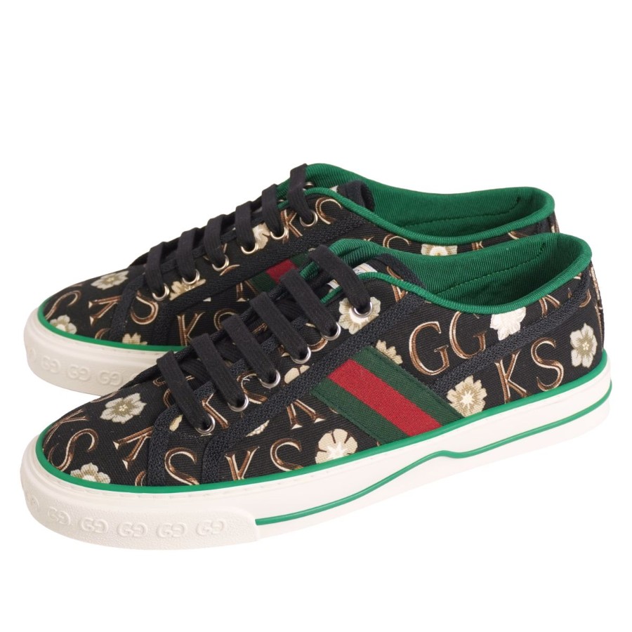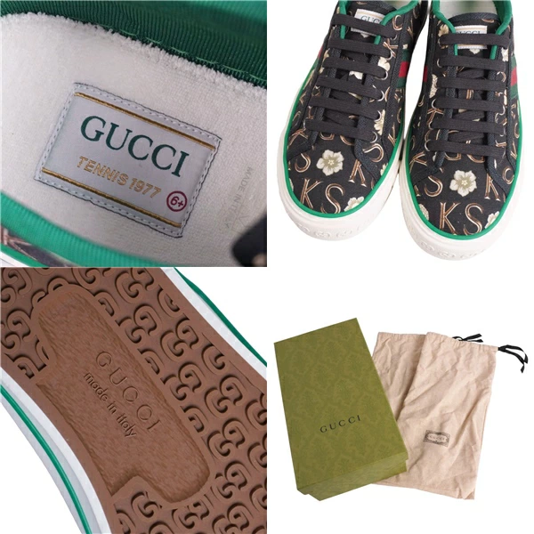 グッチ GUCCI TENNIS 1977 スニーカー ローカット キャンバス シェリーライン シューズ 靴 メンズ イタリア製 ブラック サイズ6.5(25.5cm相当)
