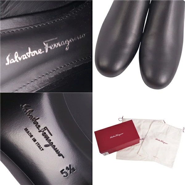 サルヴァトーレ フェラガモ Salvatore Ferragamo サンダル レザー ヒール シューズ 靴 レディース イタリア製 ブラック サイズ5.5C(23cm相当)