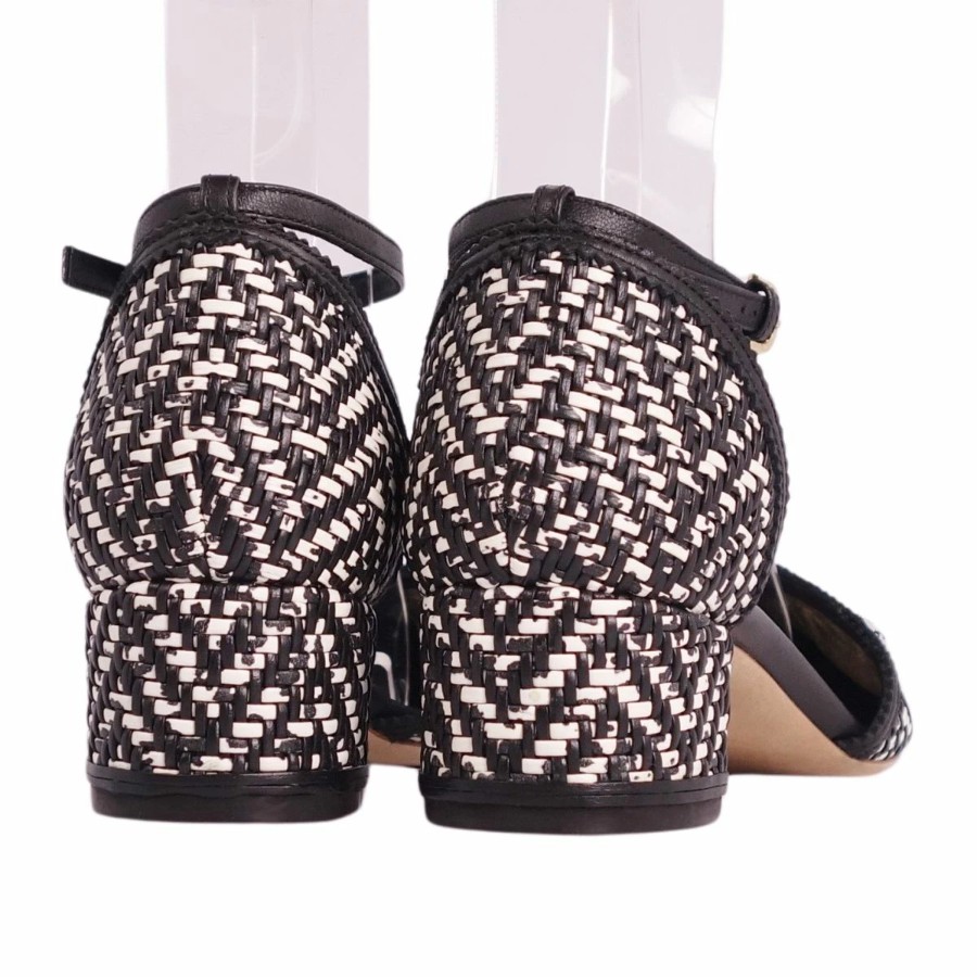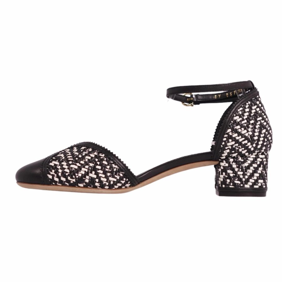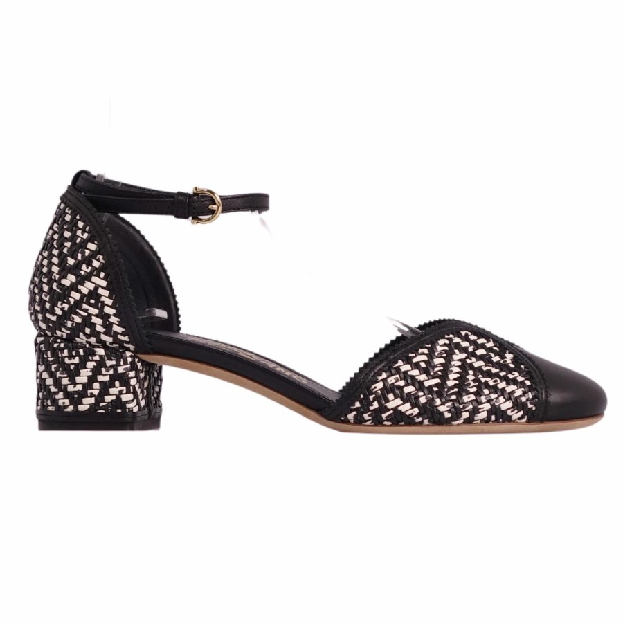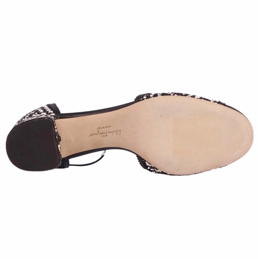 サルヴァトーレ フェラガモ Salvatore Ferragamo パンプス アンクルストラップ 編み込み レザー ヒール シューズ 靴 レディース イタリア製 ブラック/ホワイト サイズ6.5D(24cm相当)
