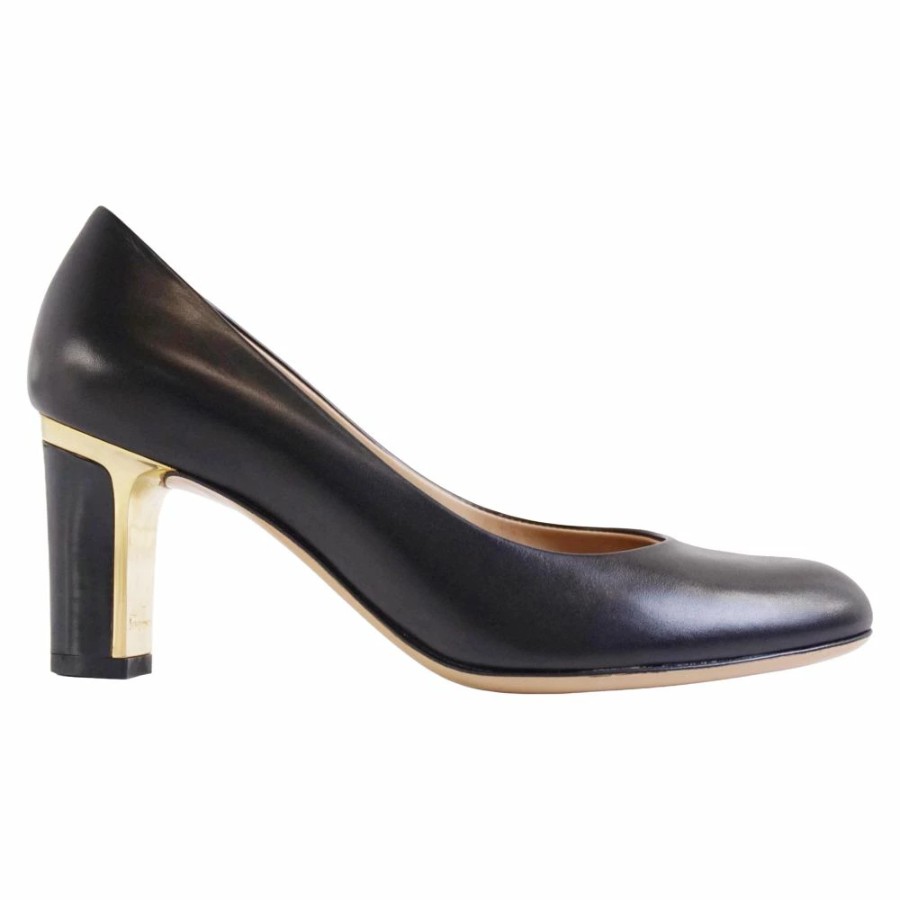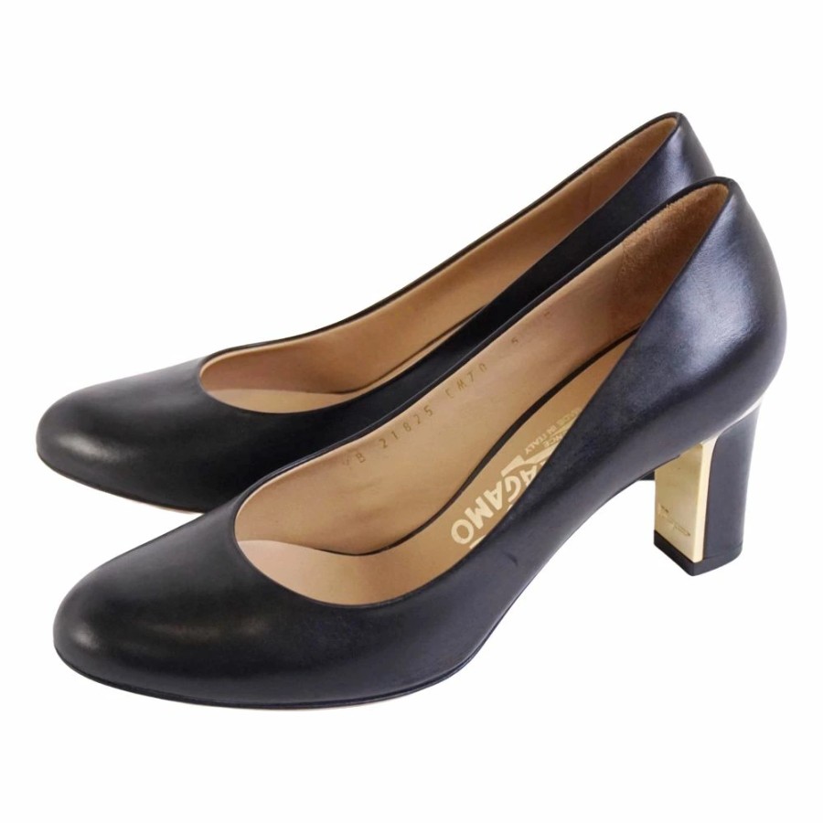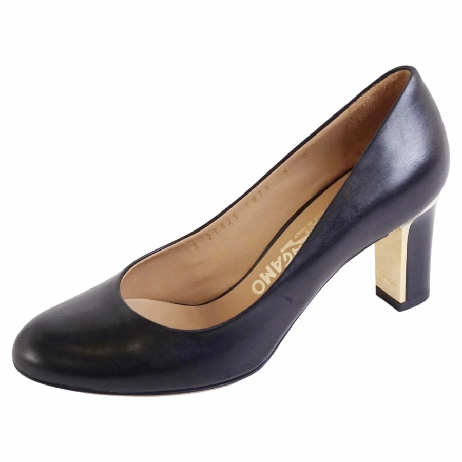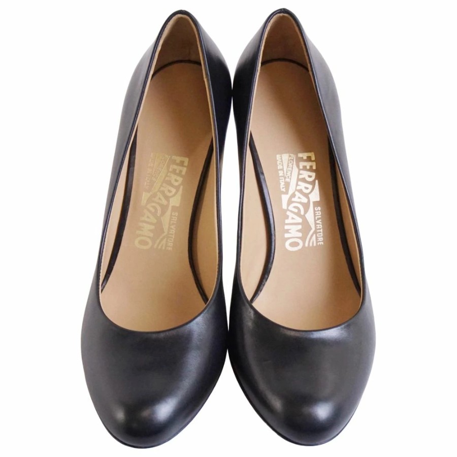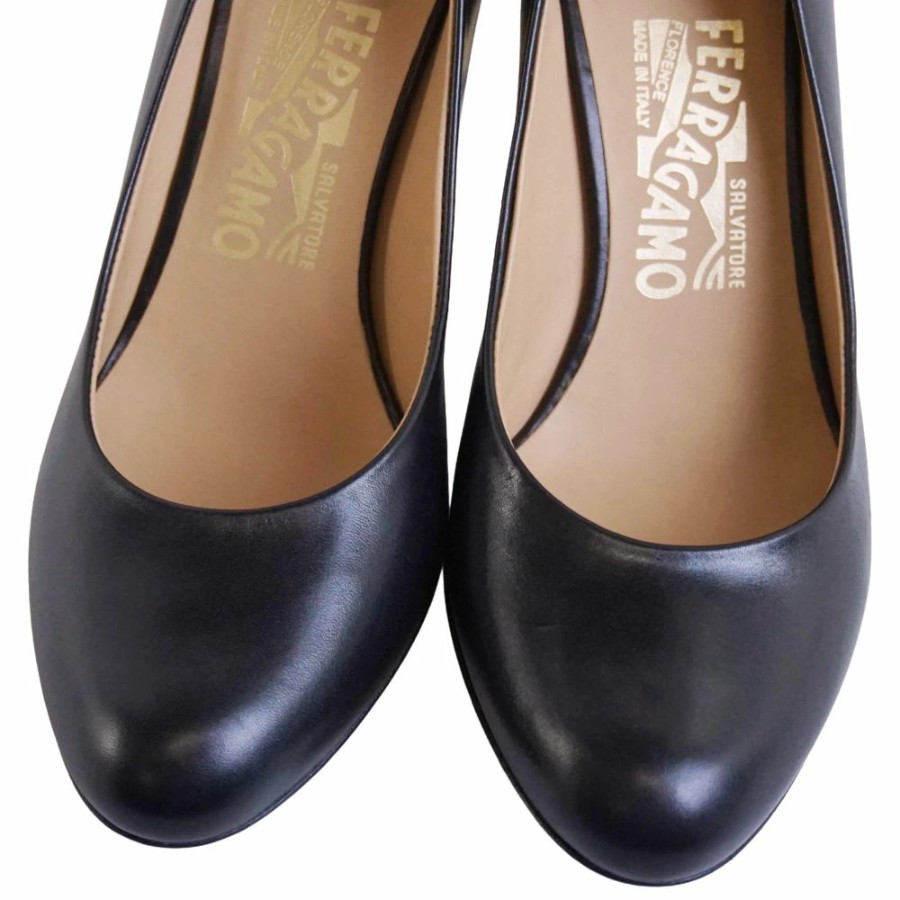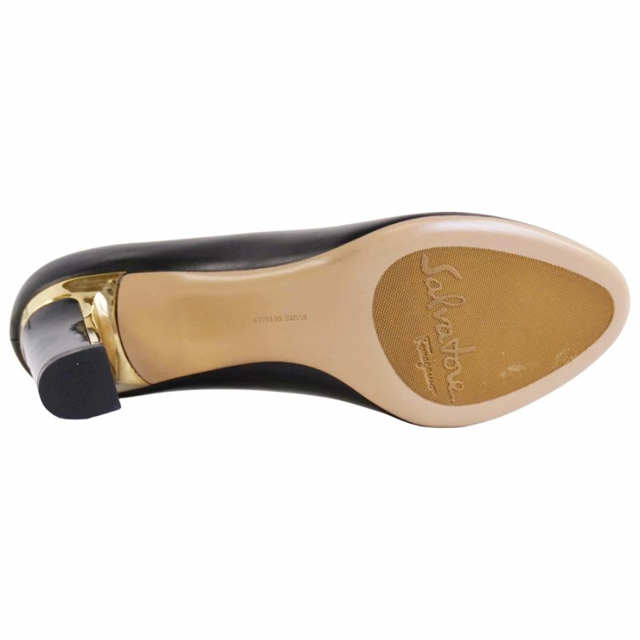 [Like New] Salvatore Ferragamo Women's Leather Heeled Pumps, Made in Italy, Size 5B (equivalent to 22.5cm), Black [Pre-owned]