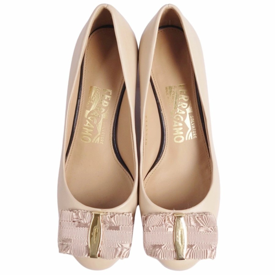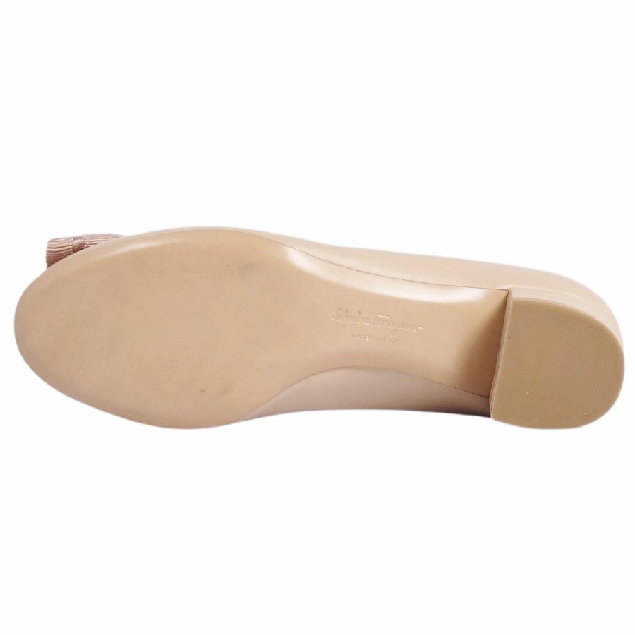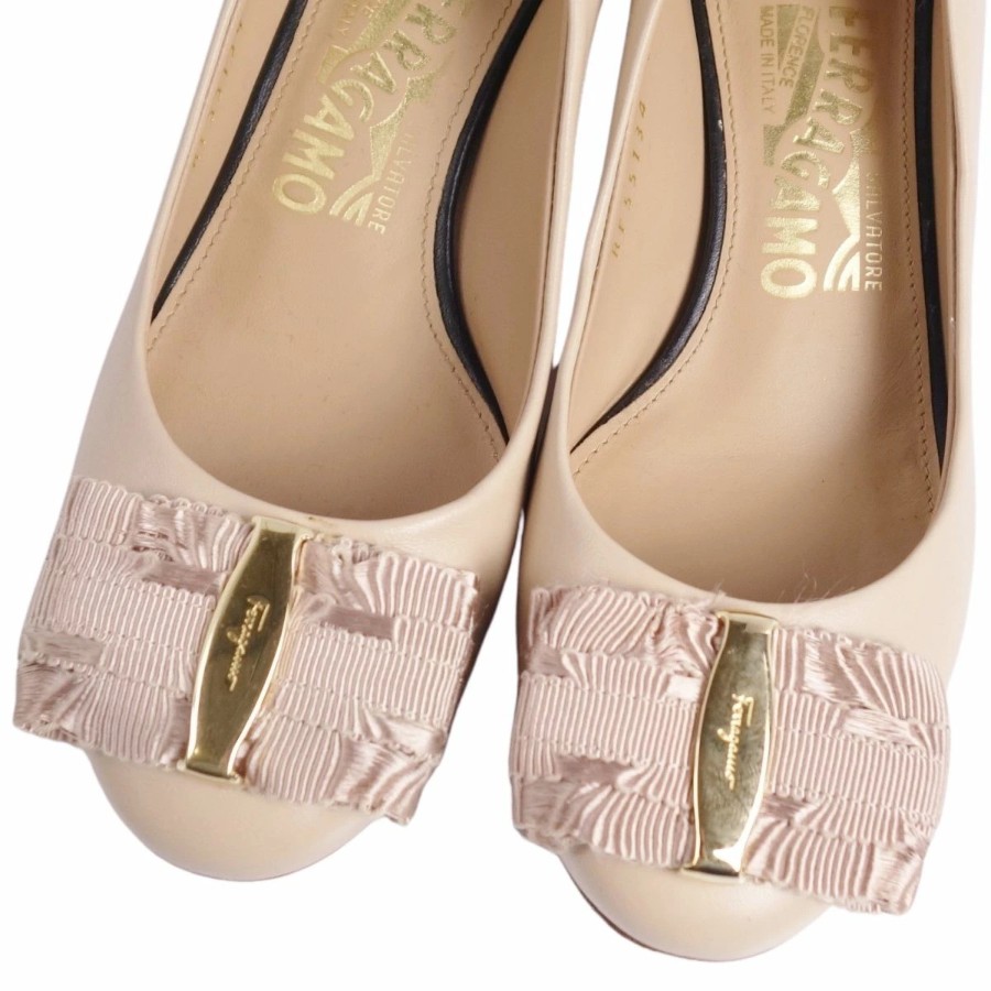 [Like New] Salvatore Ferragamo Vara Leather Heeled Pumps for Women, Made in Italy, Size 4.5D (equivalent to 22cm), Beige [Used]