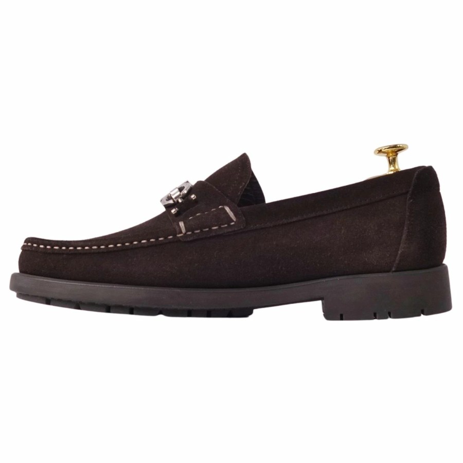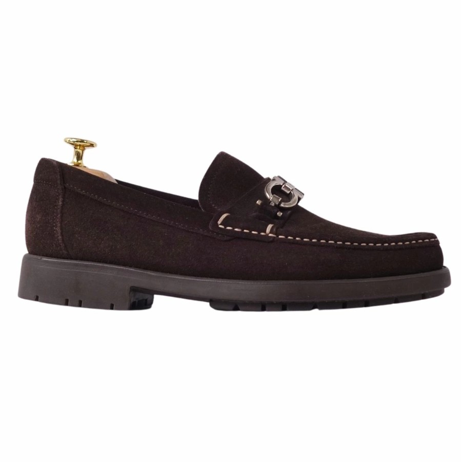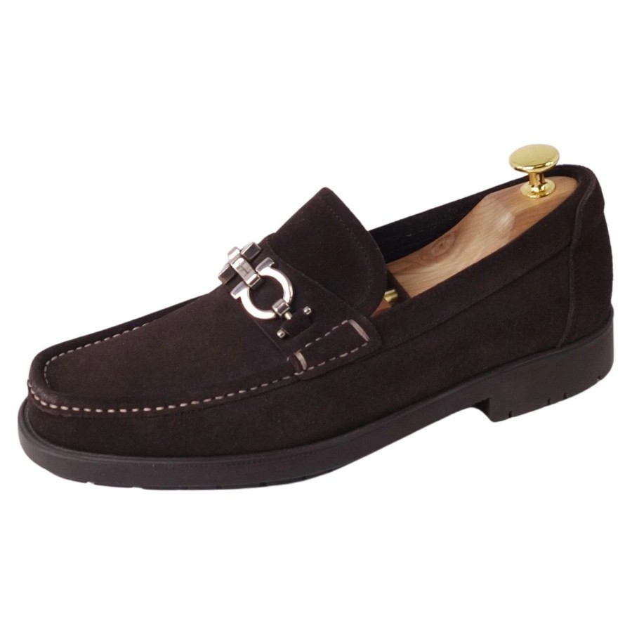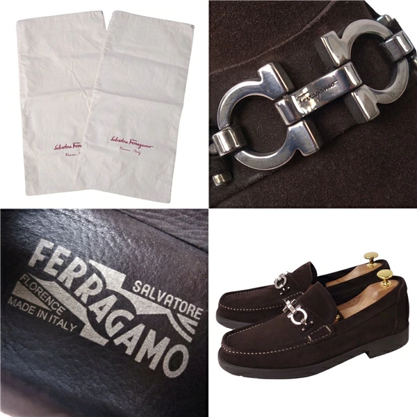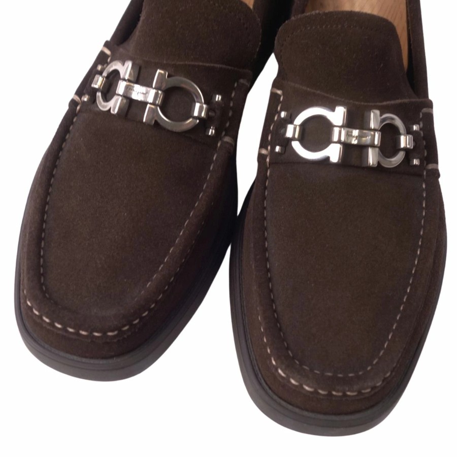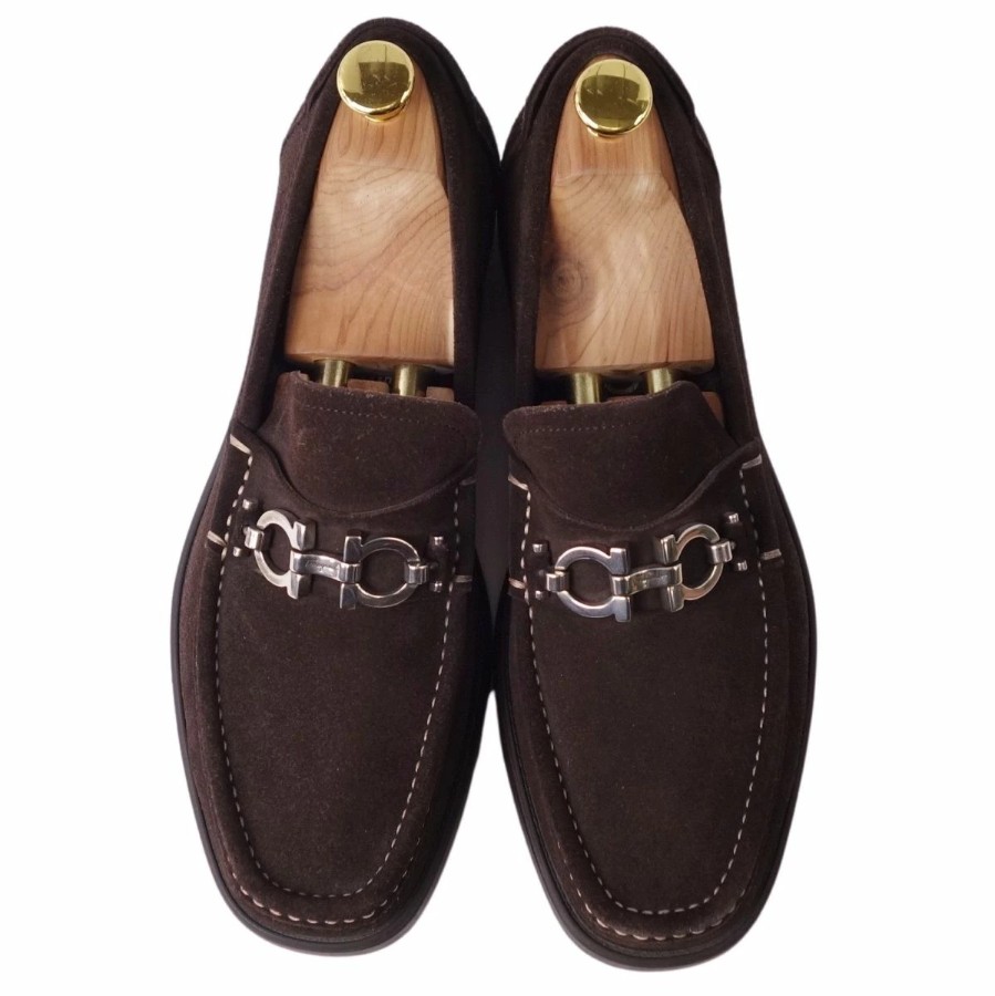 サルヴァトーレ フェラガモ Salvatore Ferragamo ローファー モカシン スウェードレザー ガンチーニ レザーシューズ 靴 イタリア製 メンズ ブラウン サイズEEE6(24.5cm相当)