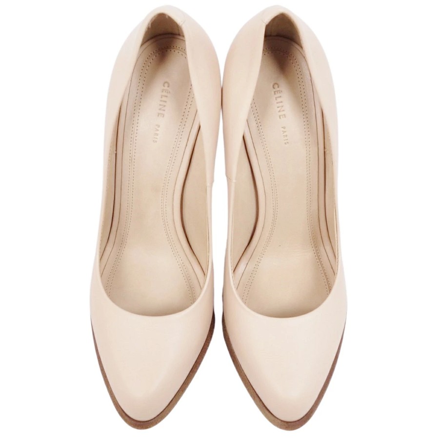 セリーヌ CELINE フィービー期 パンプス ヒール カーフレザー シューズ レディース ベージュ サイズ36(23cm相当)