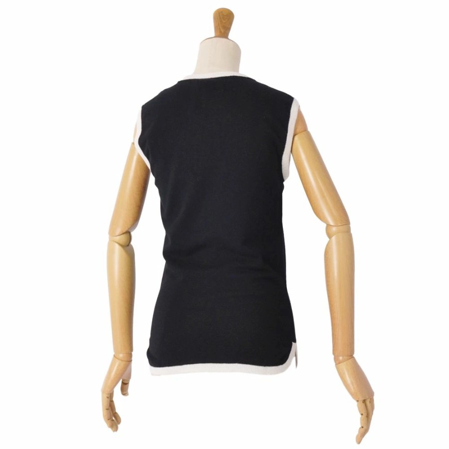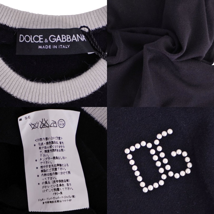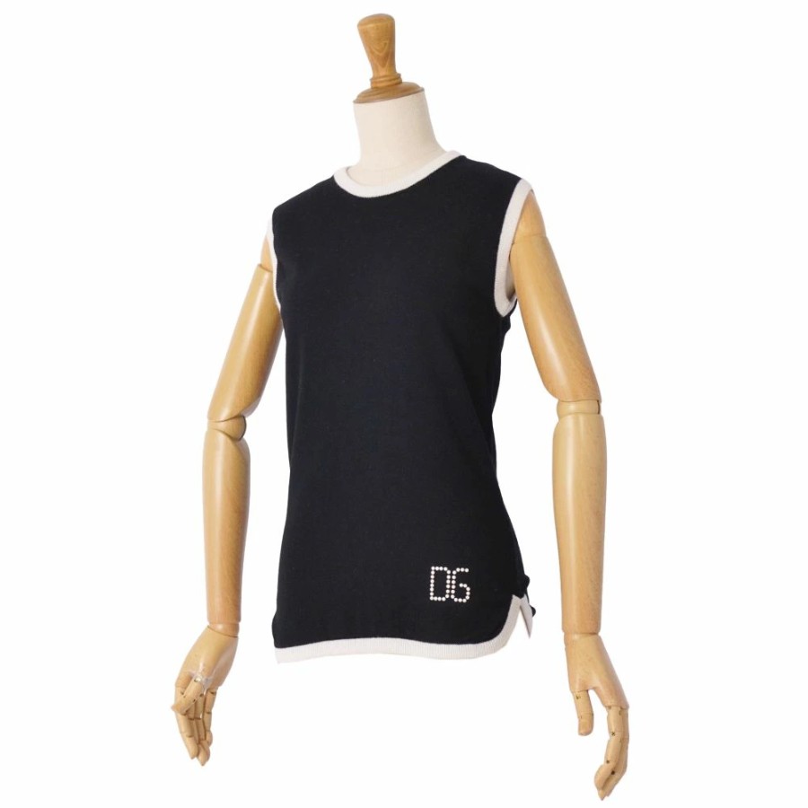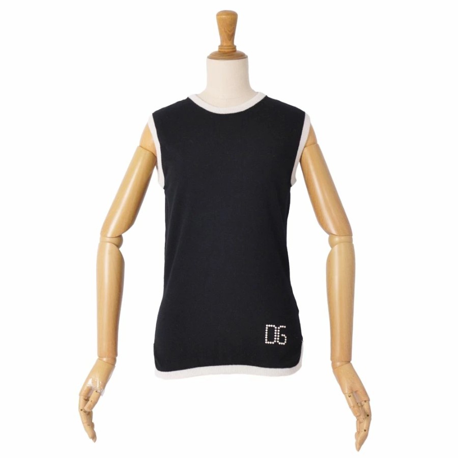 ドルチェ&ガッバーナ DOLCE&GABBANA ニット セーター ノースリーブ フェイクパール レーヨン トップス レディース イタリア製 ブラック サイズ40(M相当)