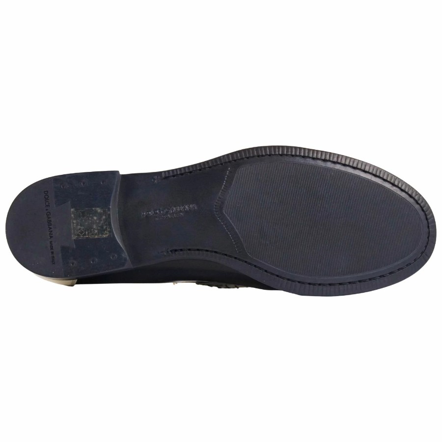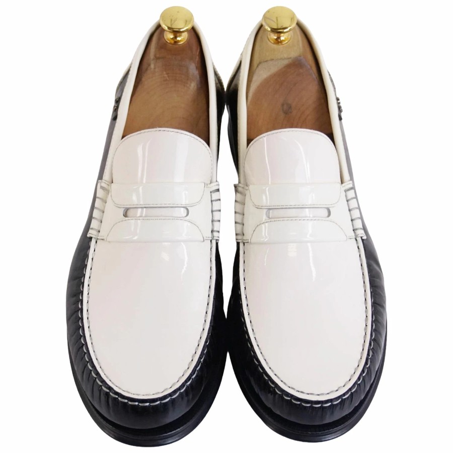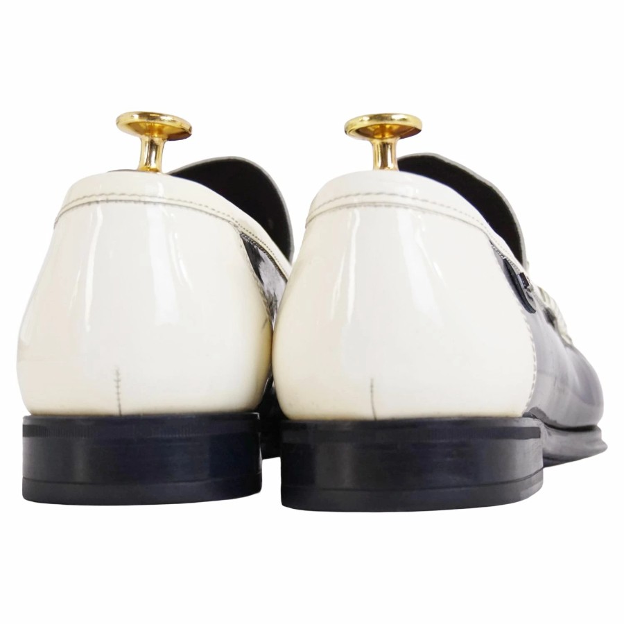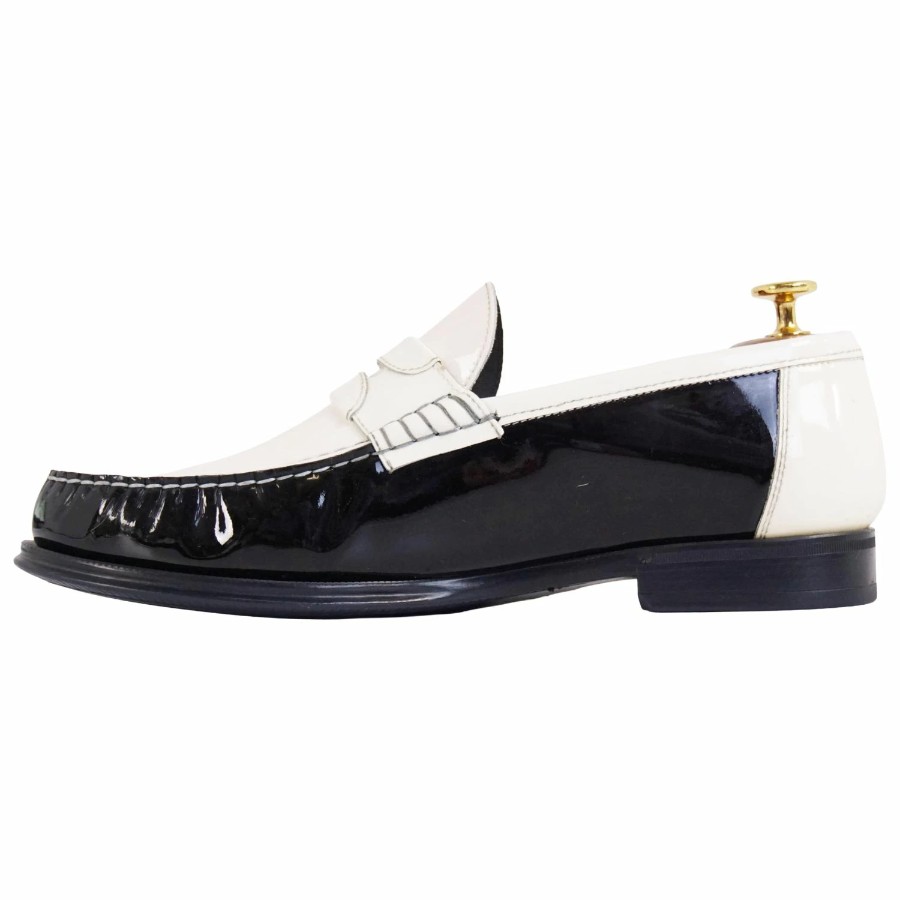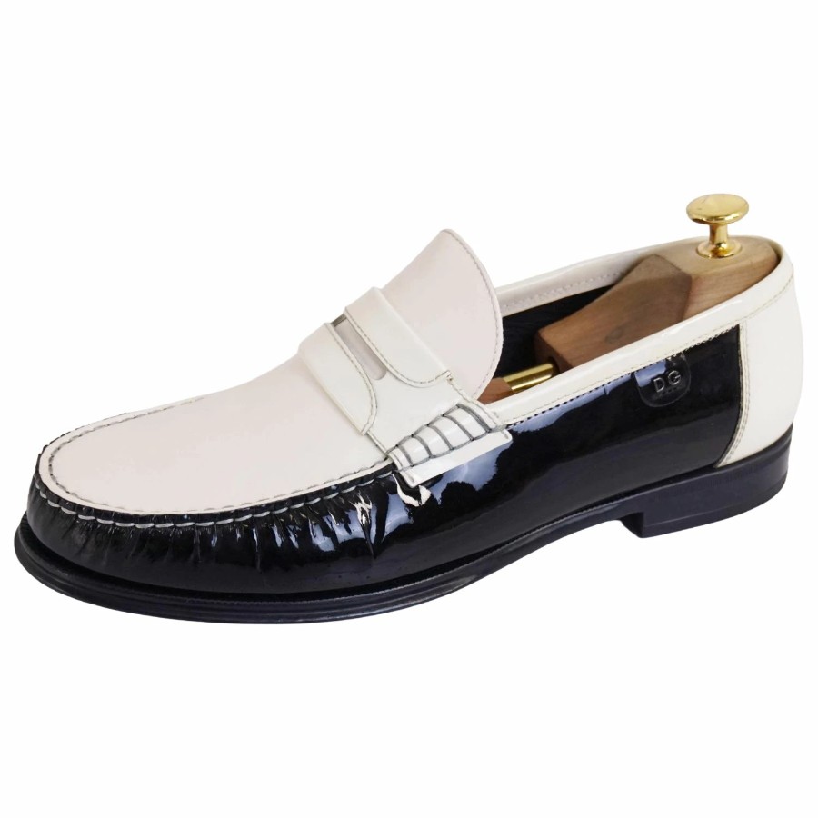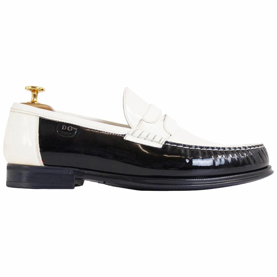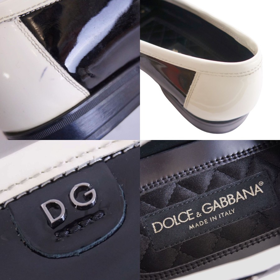 ドルチェ&ガッバーナ DOLCE&GABBANA ローファー コインローファー ペニーローファー パテントレザー シューズ 革靴 メンズ ブラック/ホワイト サイズ8(27cm相当)