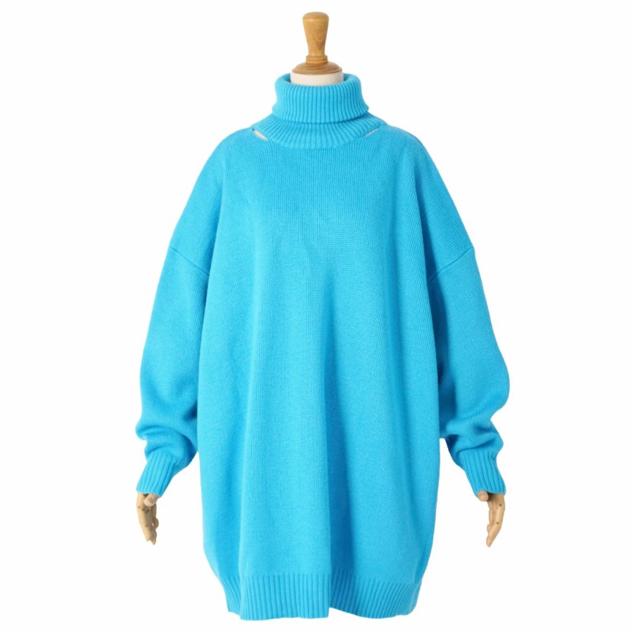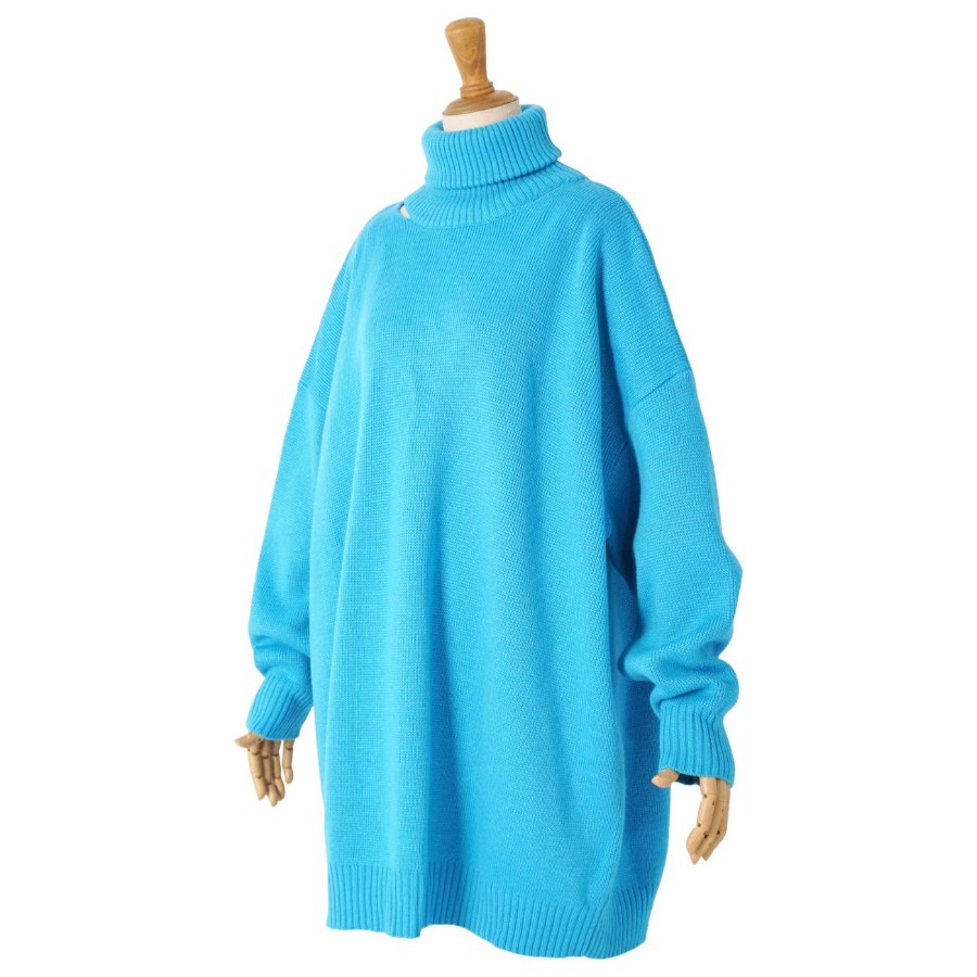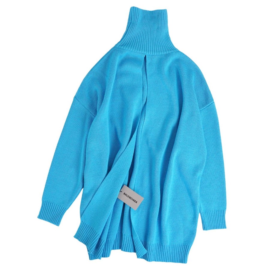 バレンシアガ BALENCIAGA ニット セーター ロングスリーブ 長袖 バックスリット ウール トップス レディース イタリア製 ブルー サイズS