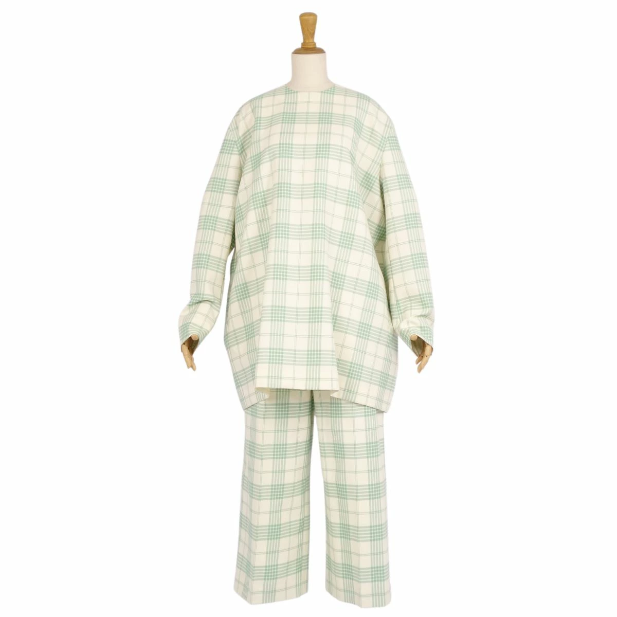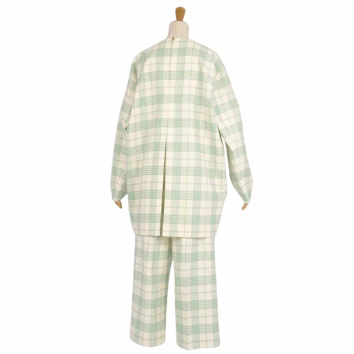 ■商品名ブラミンク BLAMINK セットアップ パンツスーツ ウール チェック シャツ パンツ レディース グリーン サイズ38(M相当)■状態説明・上質なウール素材を使用した、BLAMINKのセットアップ(シャツ/パンツ)です♪・秋冬シーズンでお使い頂ける一品です◎・日本製・国内正規取り扱いの製品です。・新古品(未使用品)です。【季節感:秋冬】【付属品:紙タグ】■素材ウール100%■カラーグリーン■表記サイズ38(M相当)■実寸サイズ着丈:約82cm身幅:約61cm肩幅:約48cm袖丈:約58cmボトムスウエスト/ヒップ:約70/32cm/cm股上/股下:約36/53cm/cm裾幅/総丈:約30/89cm/cm■状態ランクSS 未使用品・新古品■店舗管理番号ce10mo-rm20e33765womens_green womens_m
