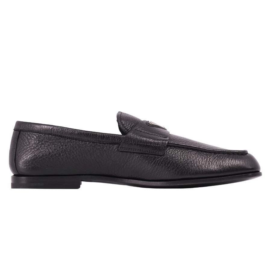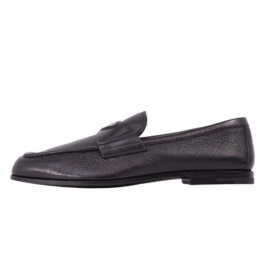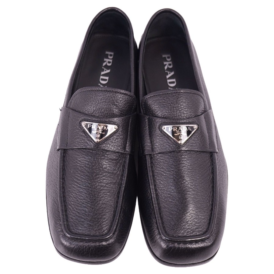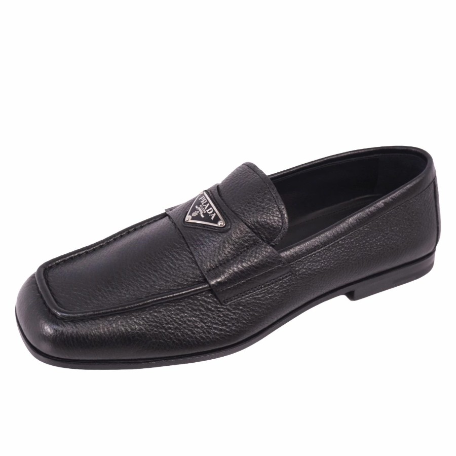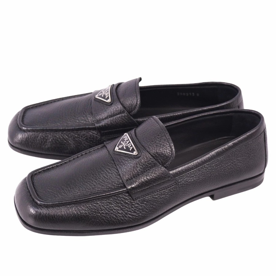 プラダ PRADA ローファー モカシン トライアングル 三角ロゴ レザー シューズ 革靴 メンズ ブラック サイズ8(27cm相当)