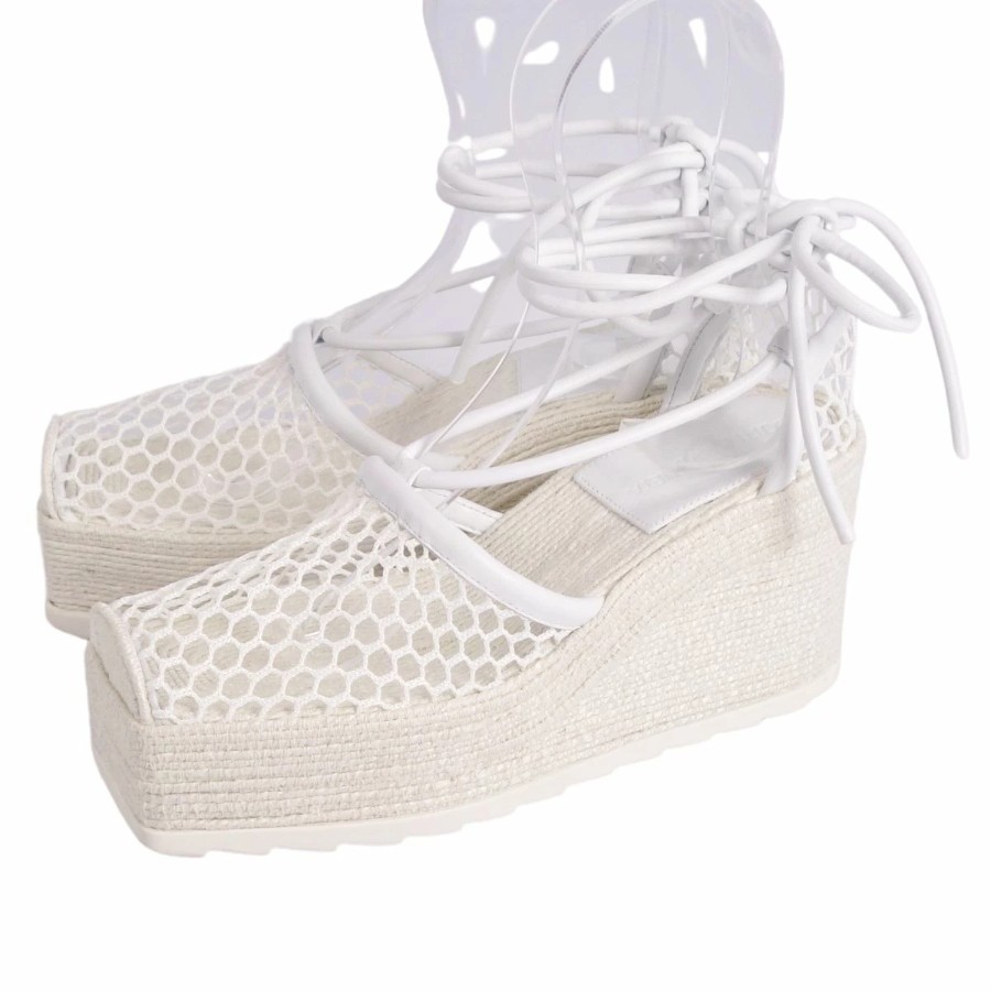 ボッテガヴェネタ BOTTEGA VENETA サンダル ウェッジソール レザー シューズ 靴 レディース イタリア製 ホワイト サイズ36(23cm相当)