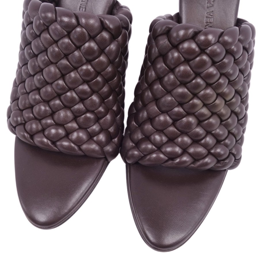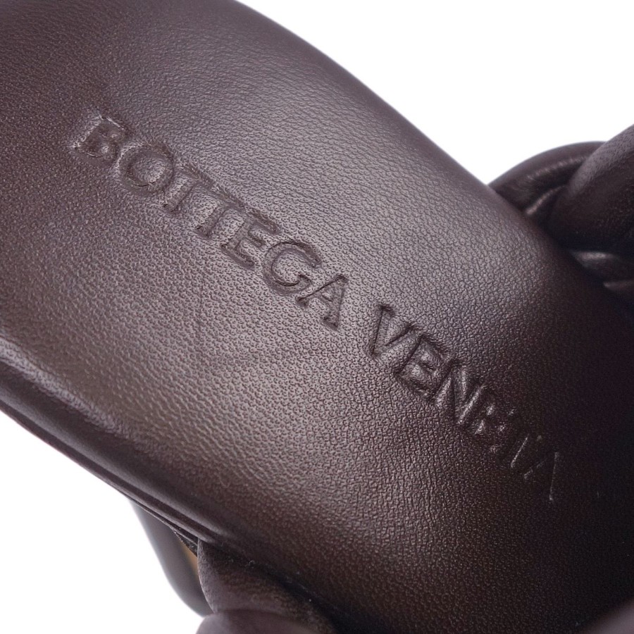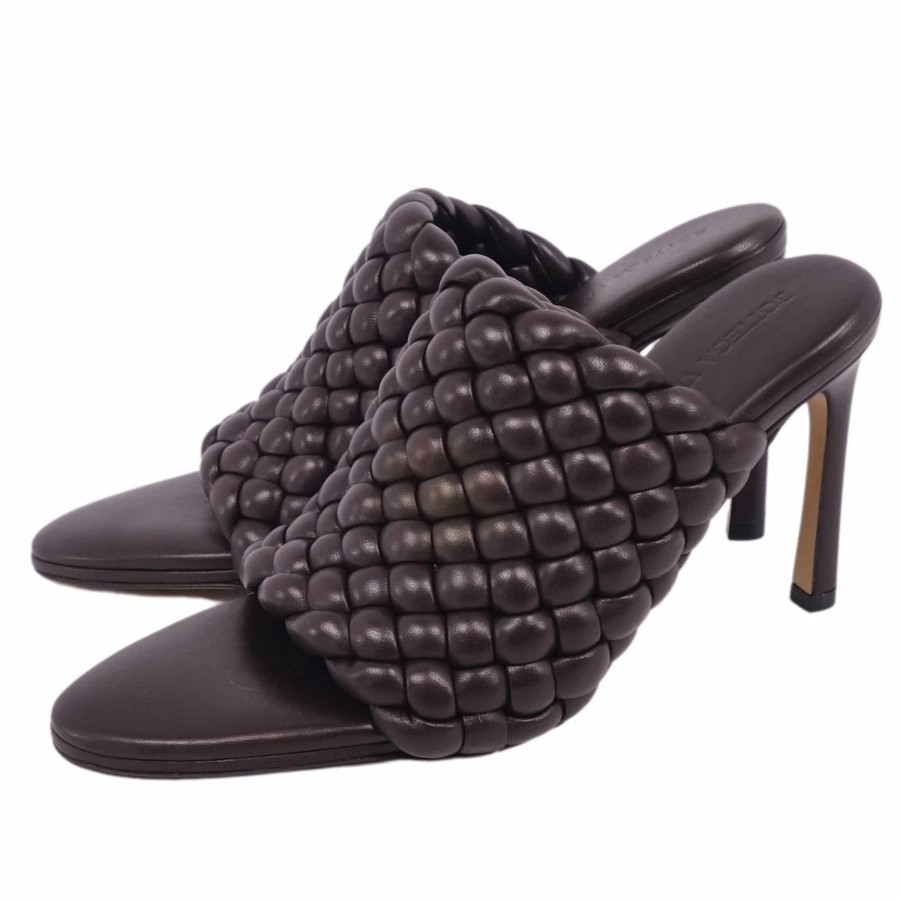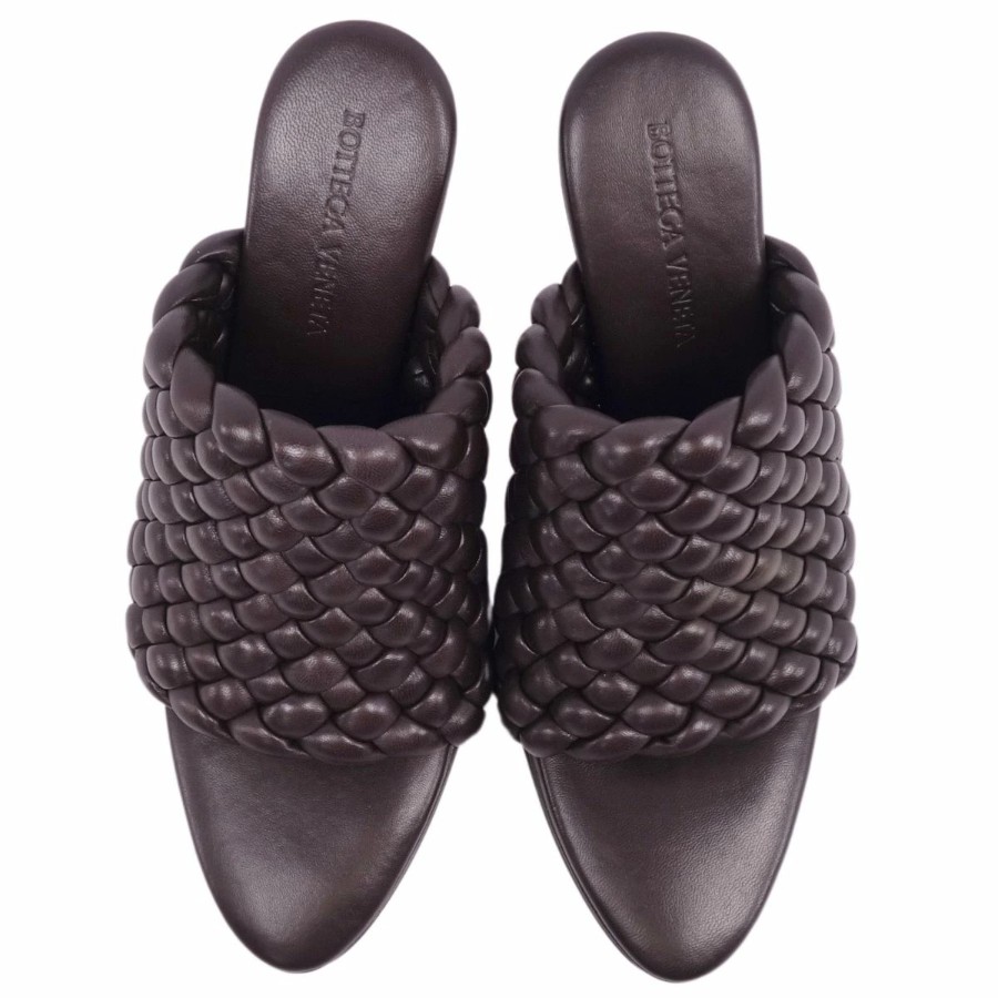ボッテガヴェネタ BOTTEGA VENETA サンダル ミュール ヒール イントレチャート レザー シューズ レディース ブラウン サイズ36(23cm相当)