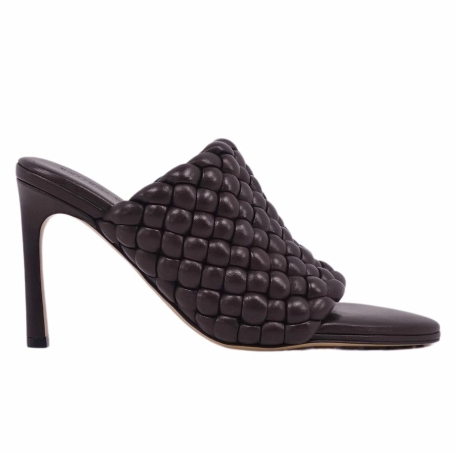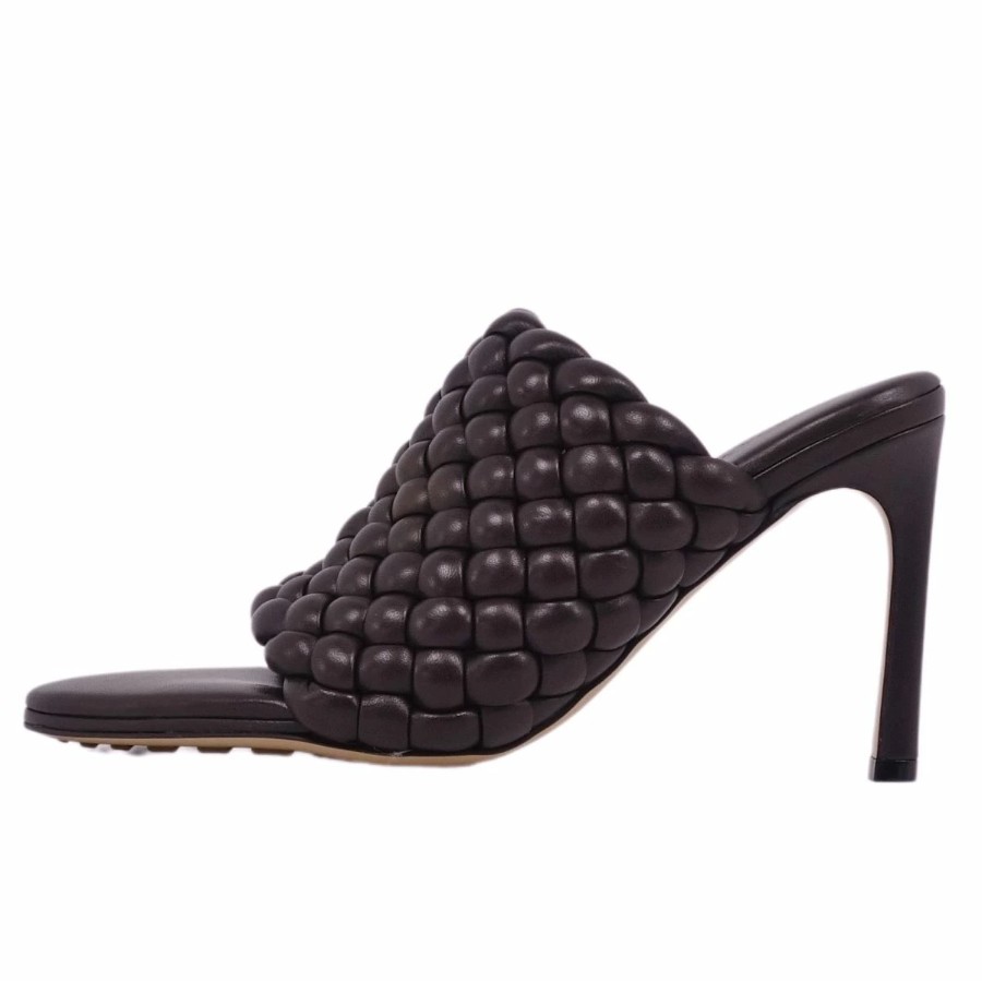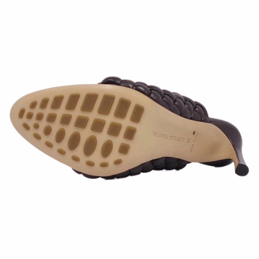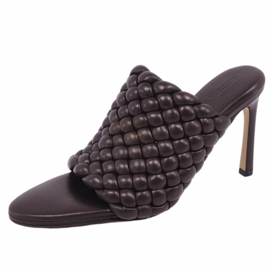 ボッテガヴェネタ BOTTEGA VENETA サンダル ミュール ヒール イントレチャート レザー シューズ レディース ブラウン サイズ36(23cm相当)