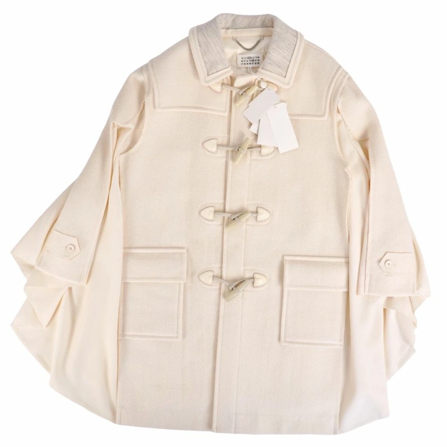 メゾンマルジェラ Maison Margiela コート ポンチョ ケープ 2022 ダッフルコート ロングコート ウール アウター レディース イタリア製 ホワイト サイズ36(XS相当)
