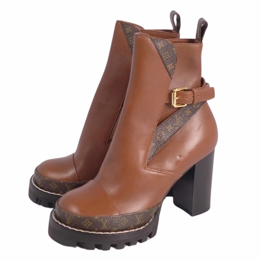 ルイヴィトン LOUIS VUITTON ブーツ スタートレイルアンクルブーツ モノグラム レザー ヒール シューズ 靴 レディース イタリア製 ブラウン サイズ35(22cm相当)