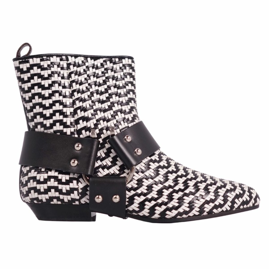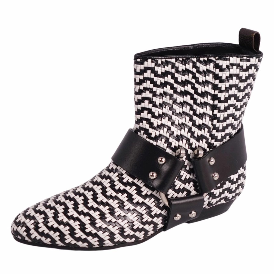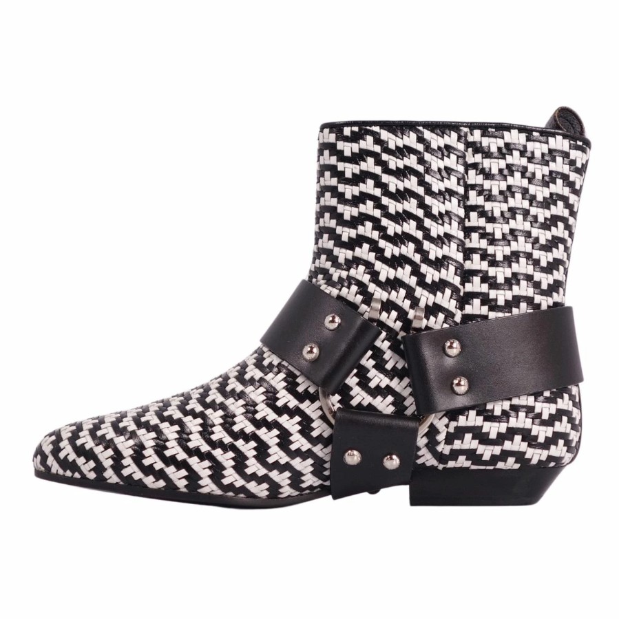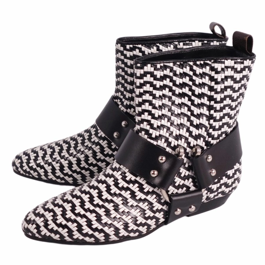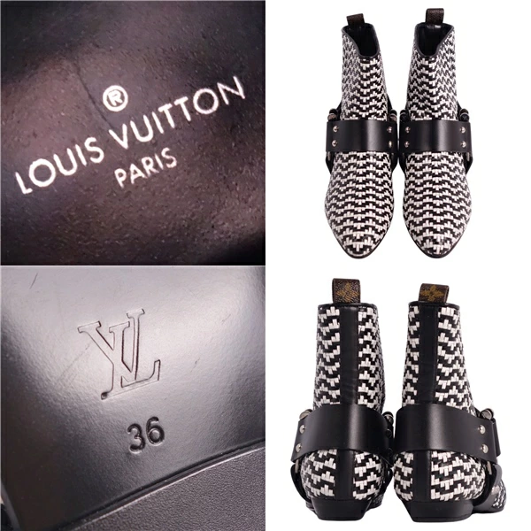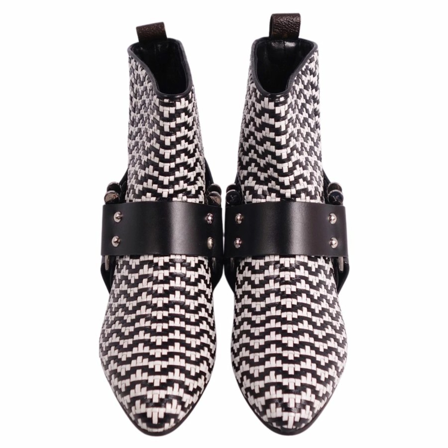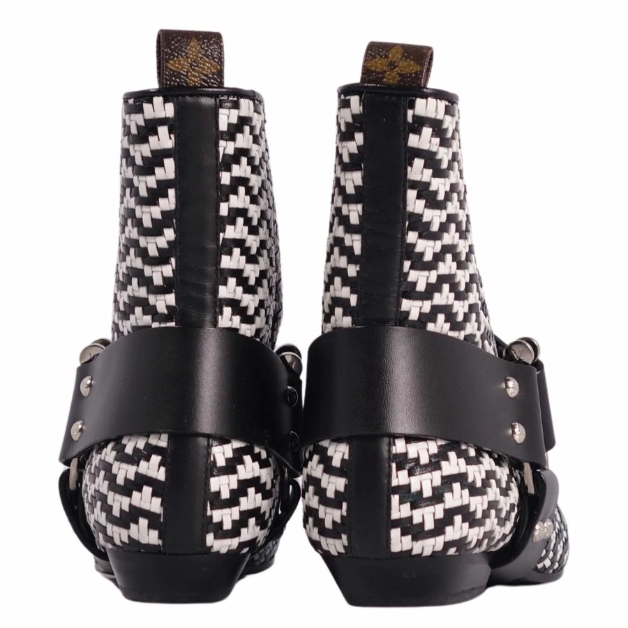 ルイヴィトン LOUIS VUITTON ブーツ ラプソディライン アンクルブーツ 編み込み レザー シューズ 靴 レディース イタリア製 ブラック/ホワイト サイズ36(23cm相当)