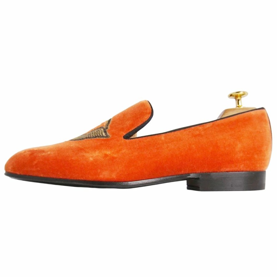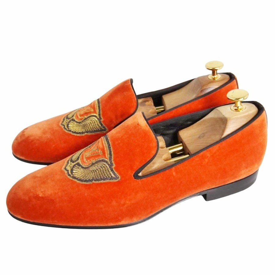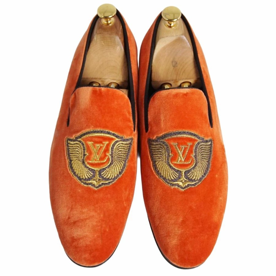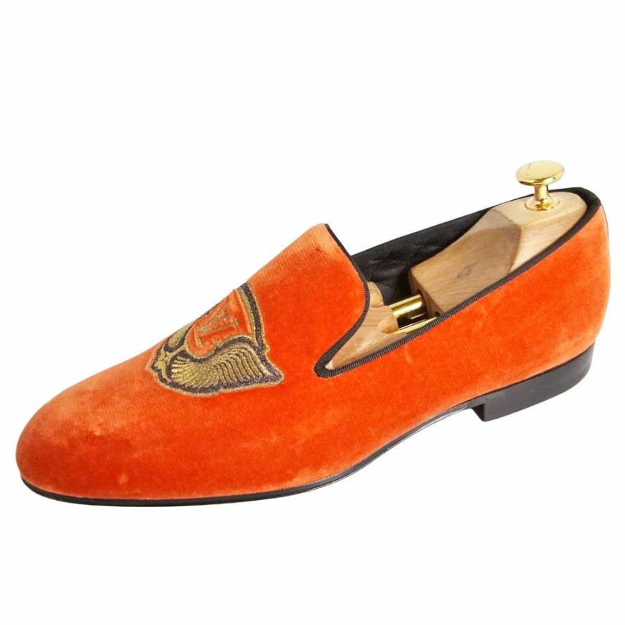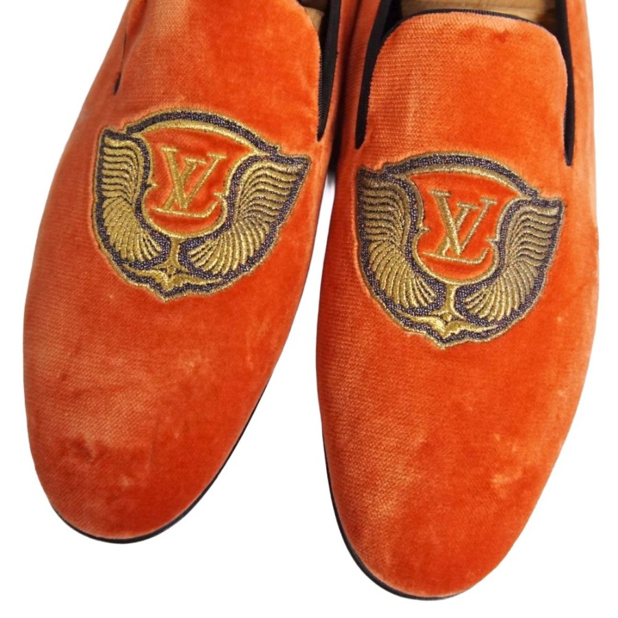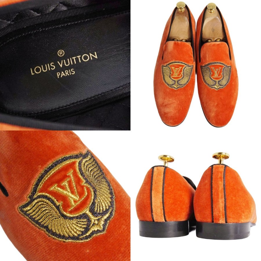 ルイヴィトン LOUIS VUITTON ローファー オートゥイユライン オペラシューズ ベロア シューズ 靴 メンズ イタリア製 オレンジ サイズ7.5(26cm相当)