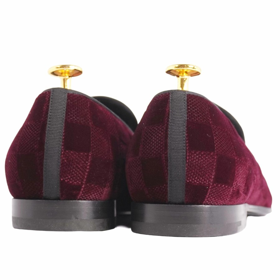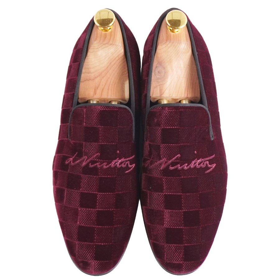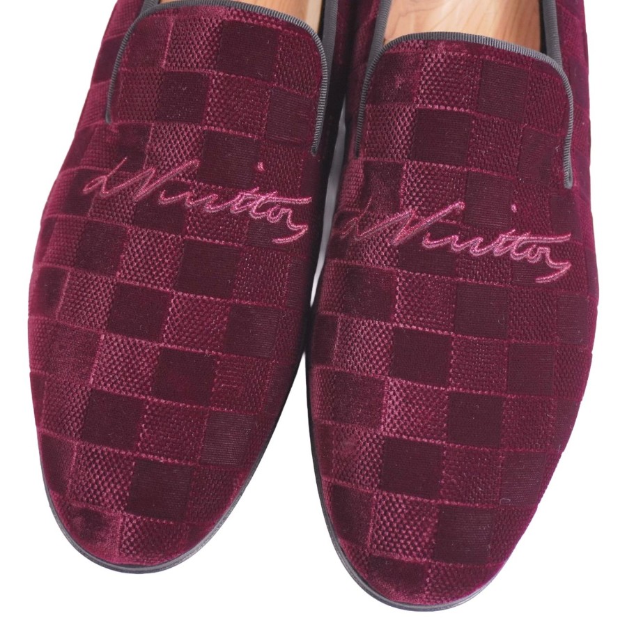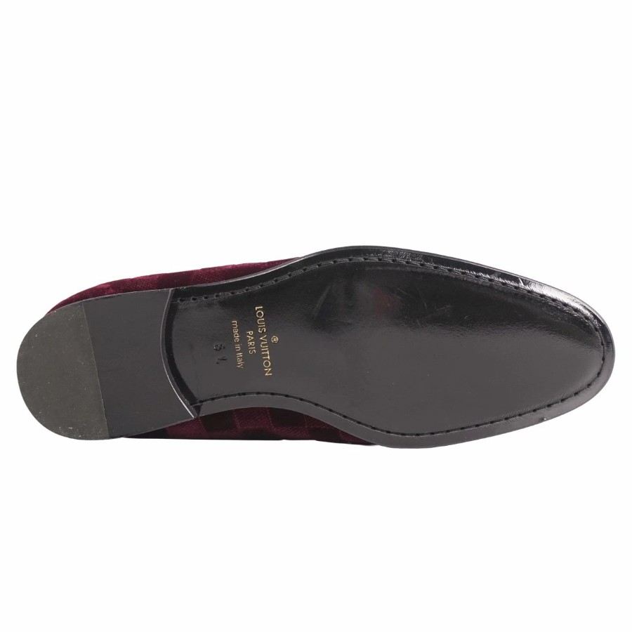 ルイヴィトン LOUIS VUITTON ローファー オートゥイユ ライン オペラシューズ ベロア ダミエ シューズ 靴 メンズ イタリア製 レッド サイズ6L(25cm相当)