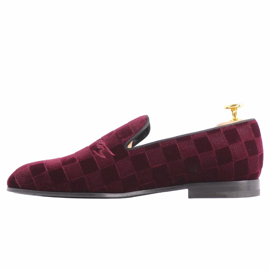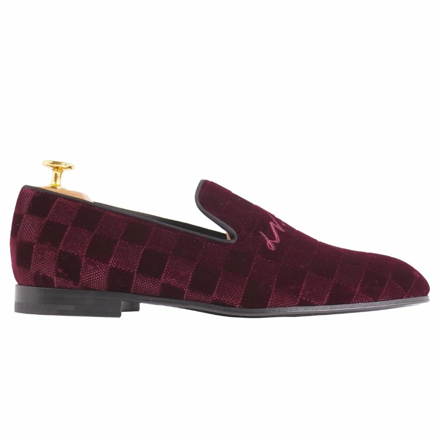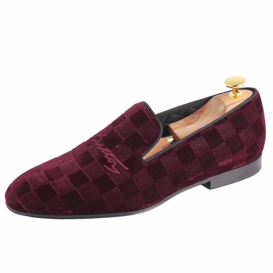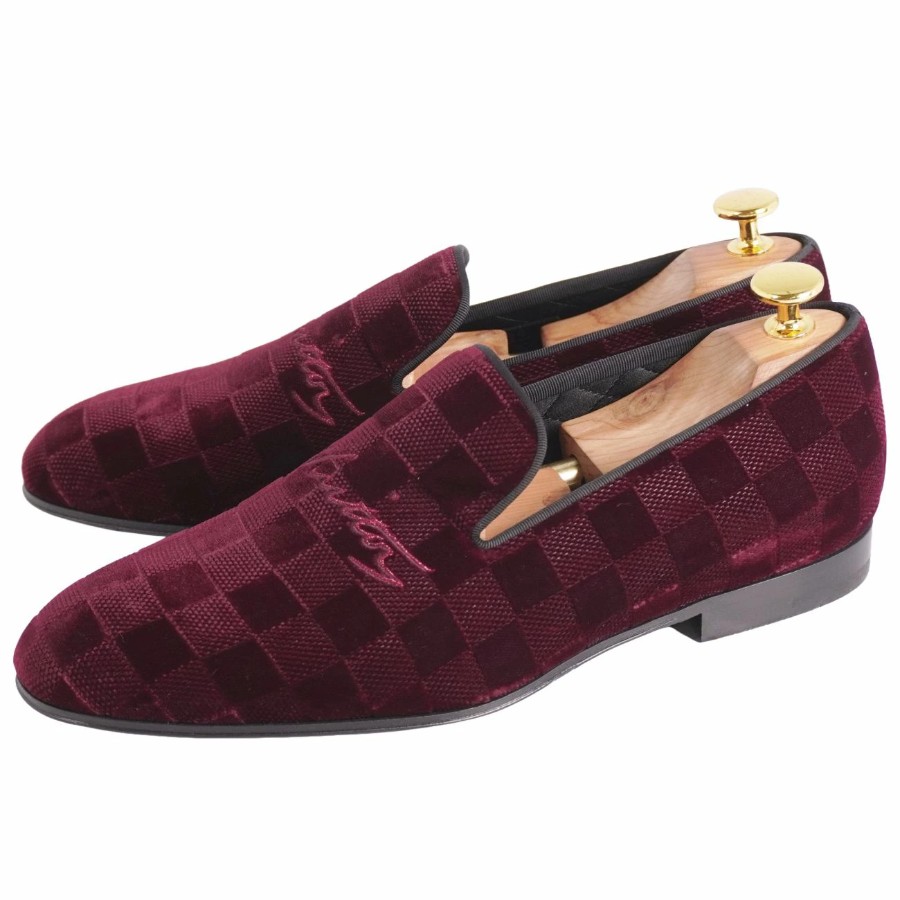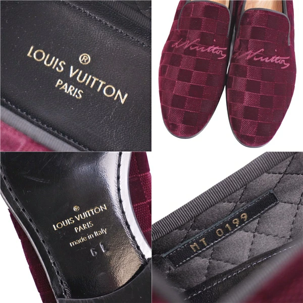 ルイヴィトン LOUIS VUITTON ローファー オートゥイユ ライン オペラシューズ ベロア ダミエ シューズ 靴 メンズ イタリア製 レッド サイズ6L(25cm相当)