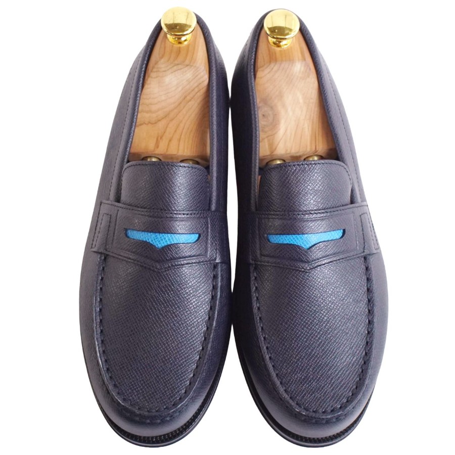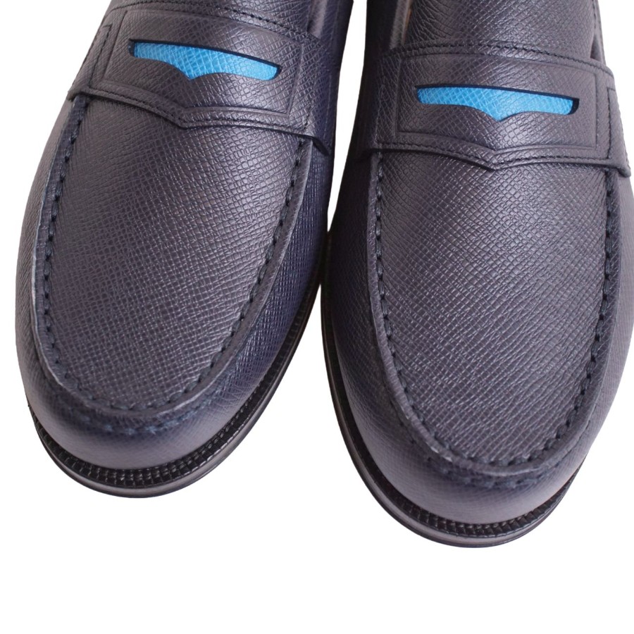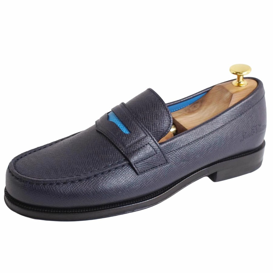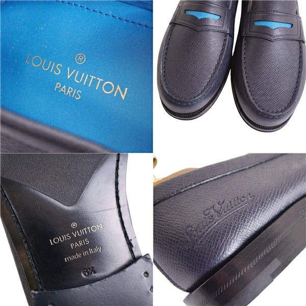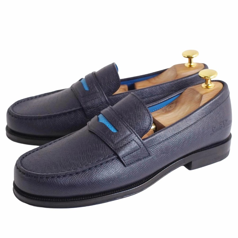 ルイヴィトン LOUIS VUITTON ローファー モカシン ソルボンヌライン レザー シューズ 靴 メンズ イタリア製 ネイビー サイズ6.5(25.5cm相当)