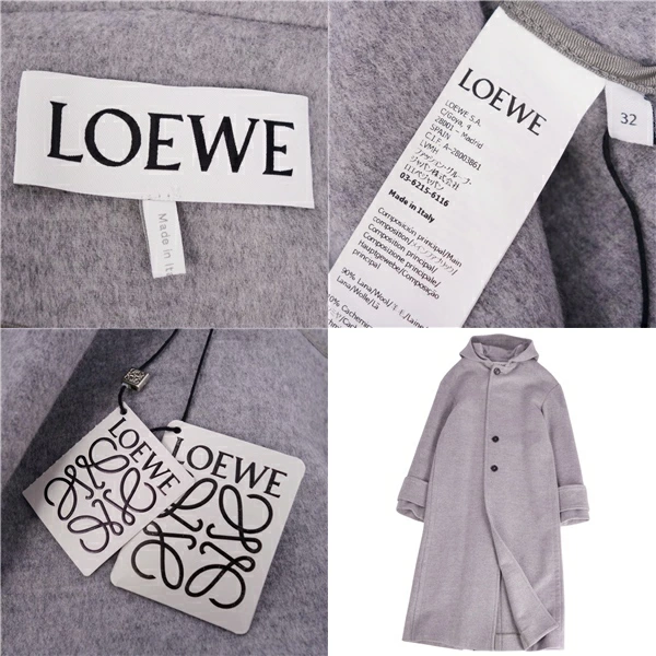 ロエベ LOEWE コート フーデッドコート ロングコート フード付き ウール カシミヤ アウター レディース グレー サイズ32(XXS相当)