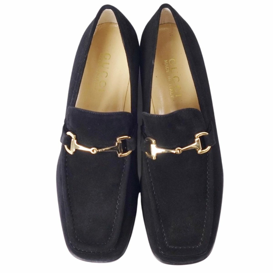 Vintage グッチ GUCCI ローファー モカシン ホースビット スウェードレザー シューズ レディース ブラック サイズ36C(23cm相当)