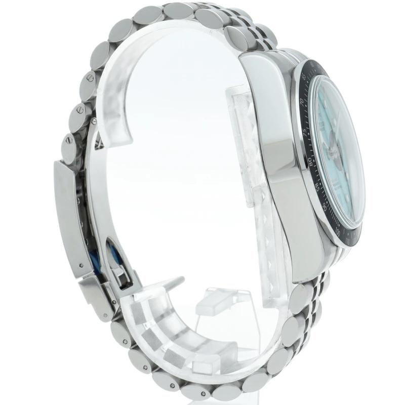 チューダーの初期のサブマリーナに使用されていた通称“イカ針”を採用した「ブラックベイ」。70時間パワーリザーブの自社製ムーブメント「MT5813」搭載。チュードル。フラミンゴが好むことで知られる熱帯の水辺特有「フラミンゴブルー」と呼ばれるターコイズカラーダイヤルです。