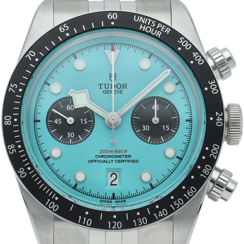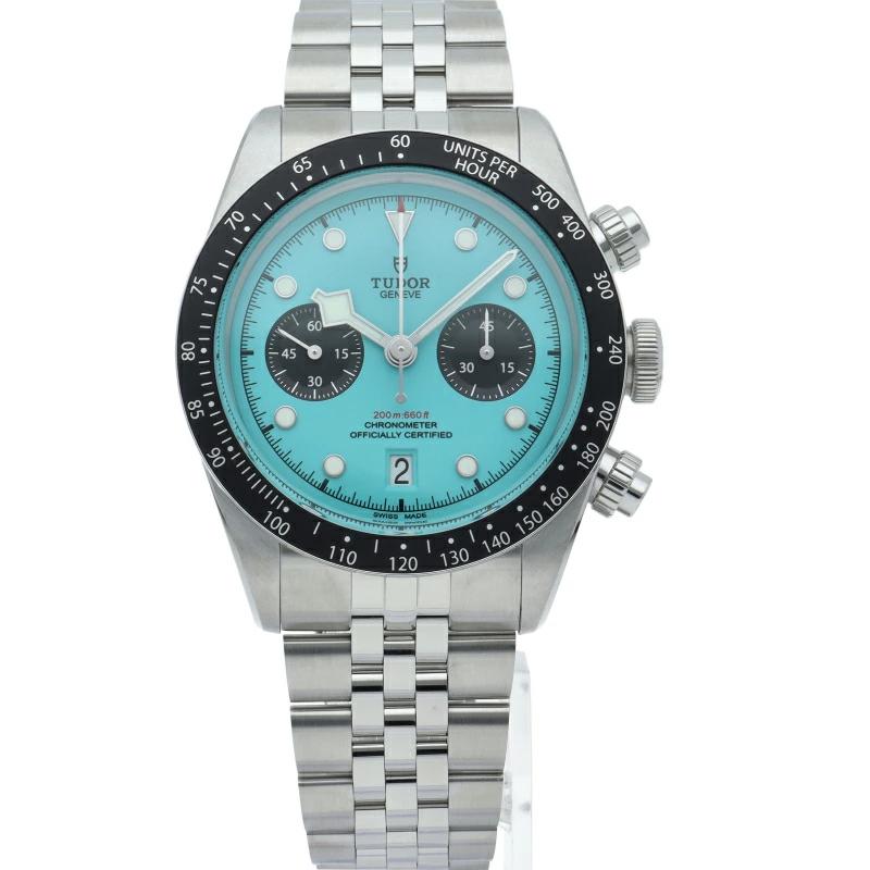 [Brand New] [Box and Warranty Card] Tudor Black Bay Chronograph Watch in Flamingo Blue, Black Bay Chronograph M79360N-0024, Stainless Steel Men's Watch, Turquoise Blue