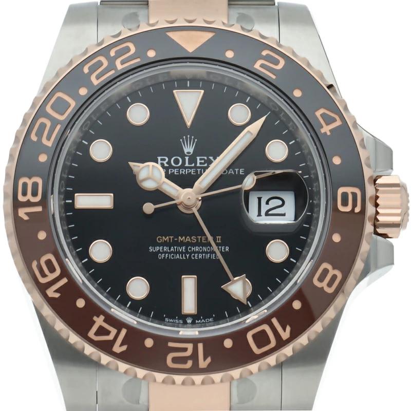 | セラクロムベゼルでのGMTマスター2。ロレックスの最新ムーブメント「Cal.3285」を搭載しており、エネルギー効率が最適化されたクロナジー脱進機、テンプを衝撃から守る為の耐震装置パラフレックス ショック・アブソーバそして70時間ものロングパワーリザーブとロレックスの最新技術を駆使したムーブメントになっています。 |