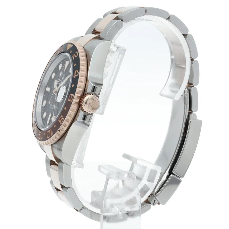 | セラクロムベゼルでのGMTマスター2。ロレックスの最新ムーブメント「Cal.3285」を搭載しており、エネルギー効率が最適化されたクロナジー脱進機、テンプを衝撃から守る為の耐震装置パラフレックス ショック・アブソーバそして70時間ものロングパワーリザーブとロレックスの最新技術を駆使したムーブメントになっています。 |