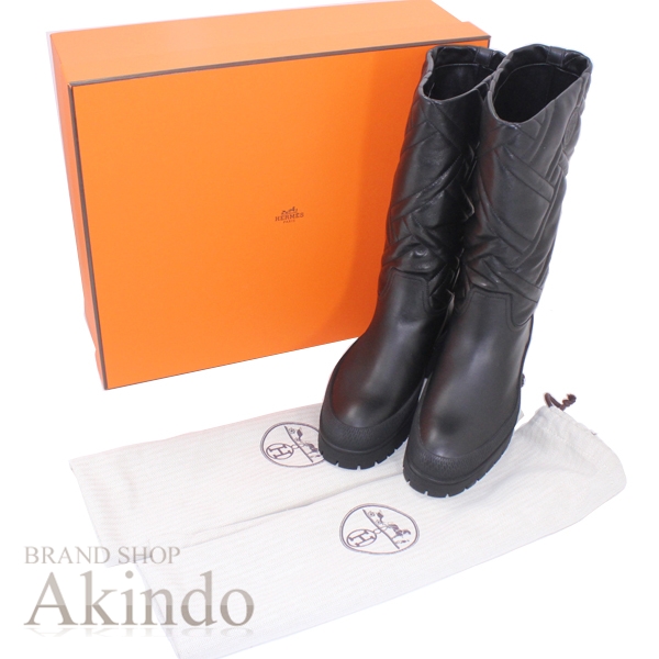 ◆ブランド エルメス◆商品名 フジ ロングブーツ◆素材 カーフレザー◆色目 黒ブラック◆程度 Nランク◆サイズ 36 1/2ヒール高さ約3 cm全高:約33cm◆付属品 箱・保存袋x2◆送料表サイズ 100◆商品詳細エルメスのロングブーツです。新品商品です。詳細は写真をご覧ください。T4905