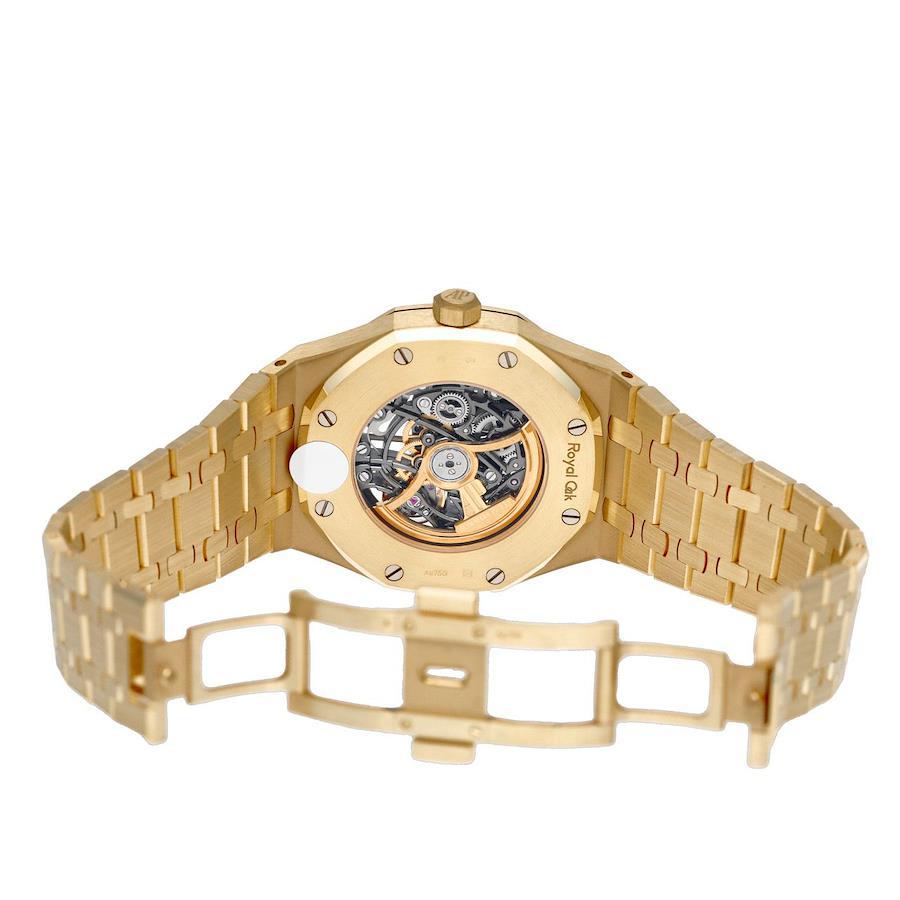 --------【商品スペック】--------お問合せコード:15407BA.OO.1220BA.01ブランド:オーデマ・ピゲシリーズ:ロイヤル オーク ダブル バランスホイール オープンワークケース素材:18Kイエローゴールドベルト素材:18Kイエローゴールドダイアルカラー:スケルトンムーブメント:自動巻(Cal.3132)ケースサイズ:41mm(リューズ除く)防水:50mガラス:サファイアガラス仕様:3針、バックスケルトン付属品:純正BOX、国際保証書保証:当店購入日より3年保証