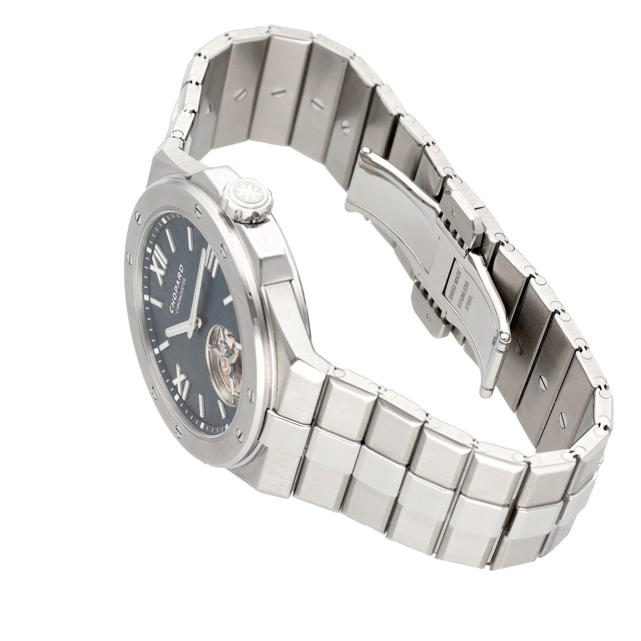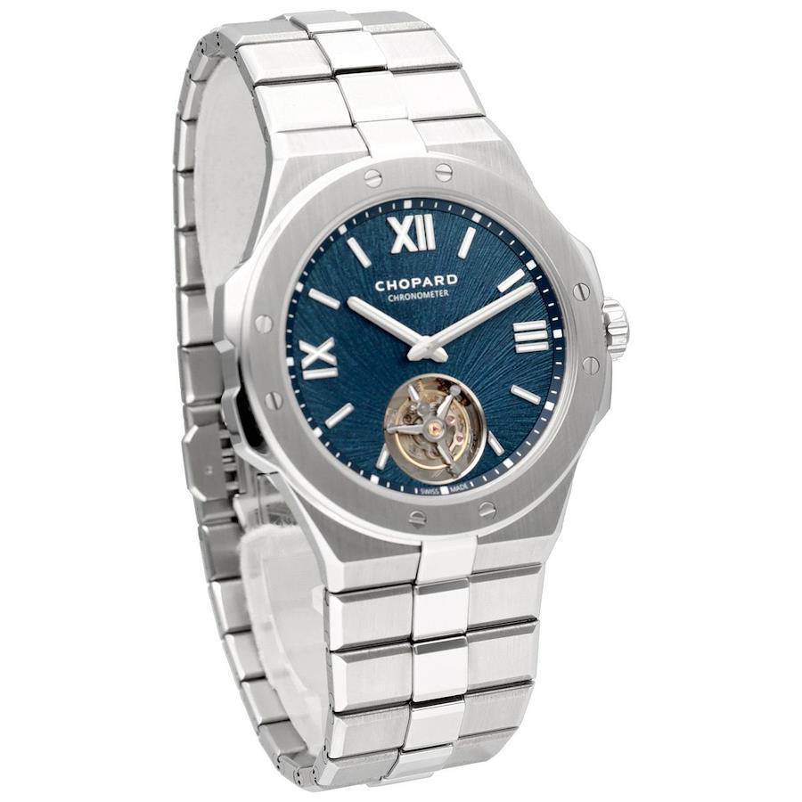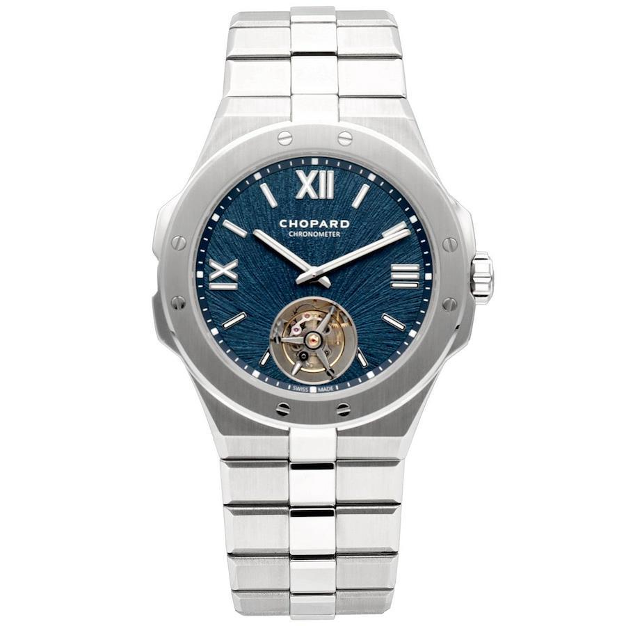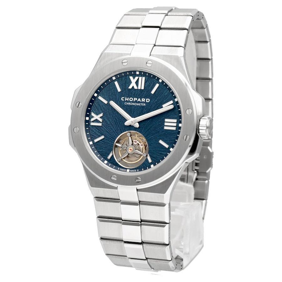 --------【商品スペック】--------お問合せコード:298616-3001ブランド:ショパールシリーズ:アルパインイーグルケース素材:ステンレススチールベルト素材:ステンレススチールダイアルカラー:ブルームーブメント:自動巻(Cal.L.U.C 96.24-L)ケースサイズ:41mm(リューズ除く)防水:100mガラス:サファイアガラス仕様:フライングトゥールビヨン、バックスケルトン付属品:純正BOX、国際保証書保証:当店購入日より3年保証メーカー参考価格:¥19,789,000-税込