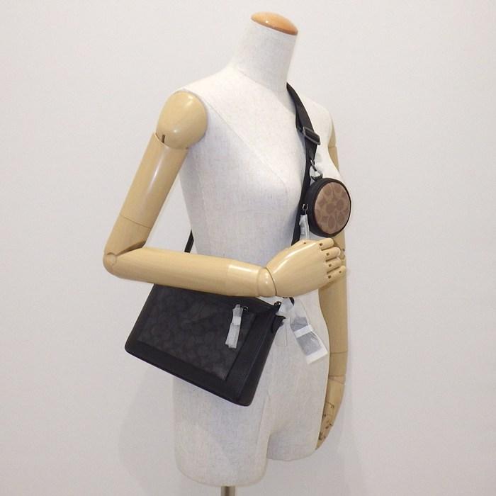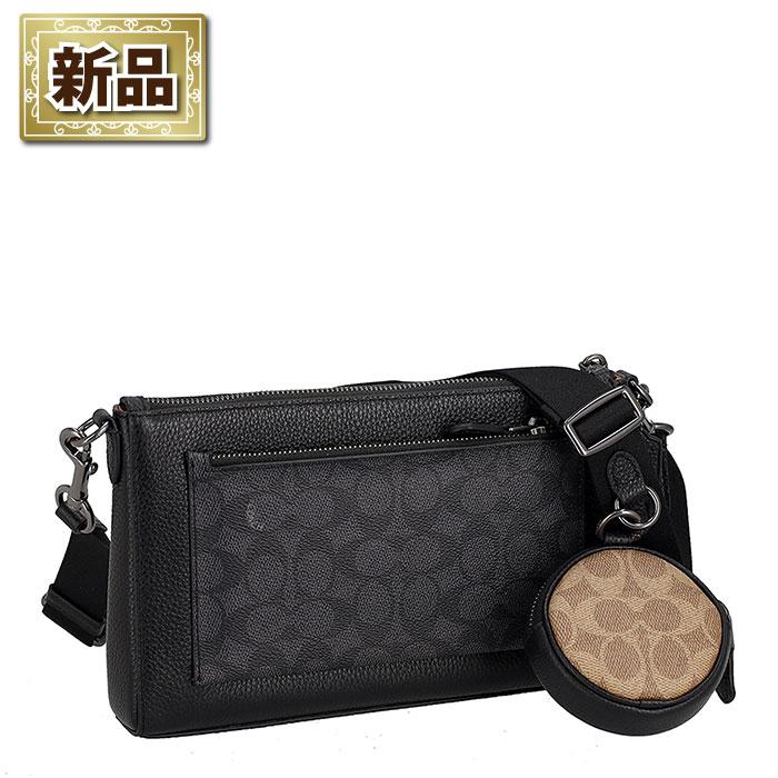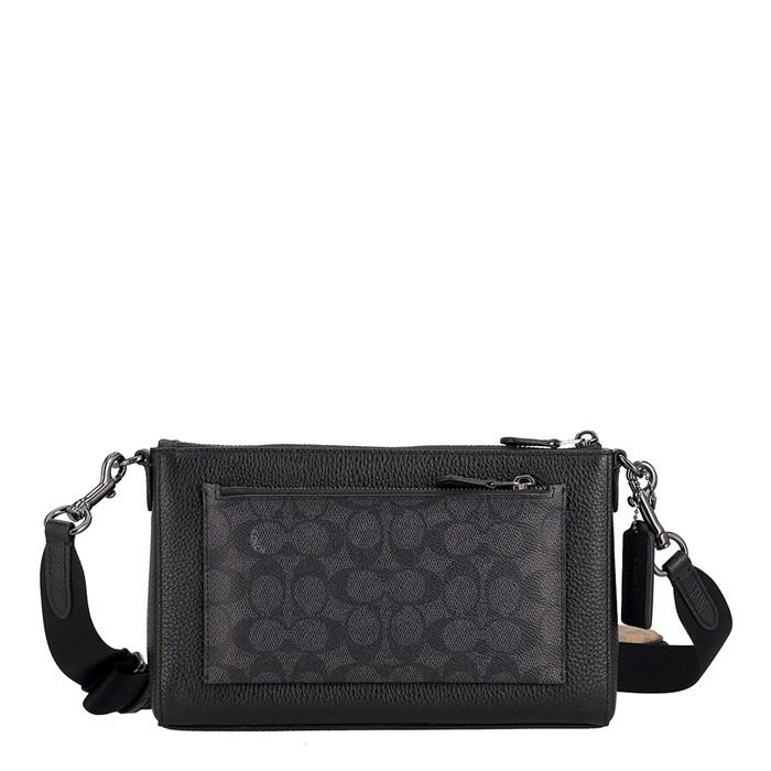 ■商品名ショルダーバッグ/ボディバッグ/クラッチバッグ/セカンドバッグ ホールデン クロスボディ・ブロックド シグネチャーキャンバス CW372 QBXAJ チャコール/タン/ブラック リファインド ペブルレザー シルバー金具