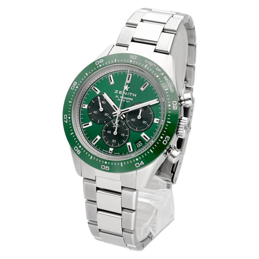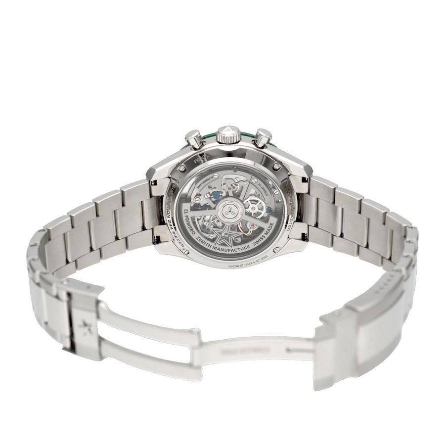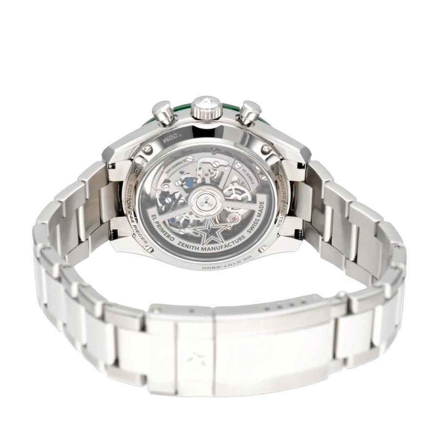 --------【商品スペック】--------お問合せコード:03.3107.3600/56.M3100ブランド:ゼニスシリーズ:クロノマスター スポーツケース素材:ステンレススチールベルト素材:ステンレススチールダイアルカラー:グリーンムーブメント:自動巻きキャリバー:Cal.El Primero 3600ケースサイズ:41mm(リューズ除く)防水:100mガラス:サファイアクリスタル仕様:デイト表示、1/10秒クロノグラフ、バックスケルトン、スモールセコンド付属品:純正BOX、国際保証書保証:当店購入日より3年保証メーカー参考価格価格:¥1,650,000-税込