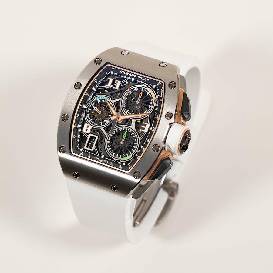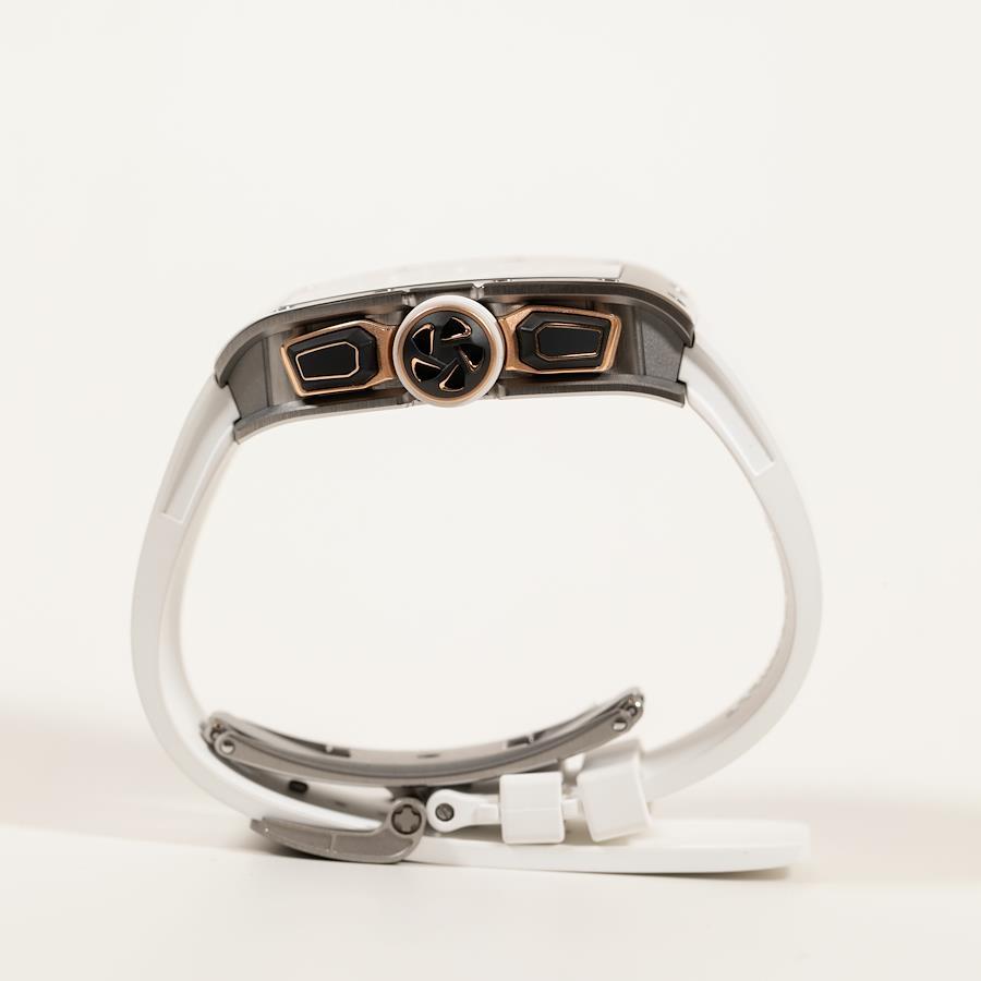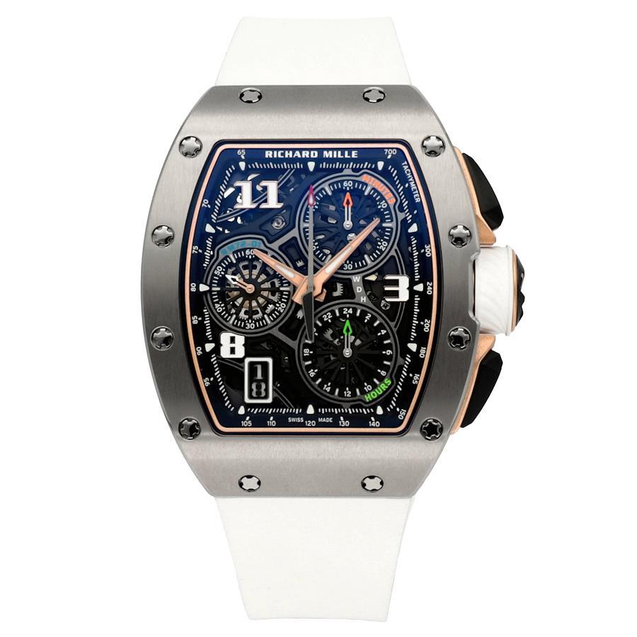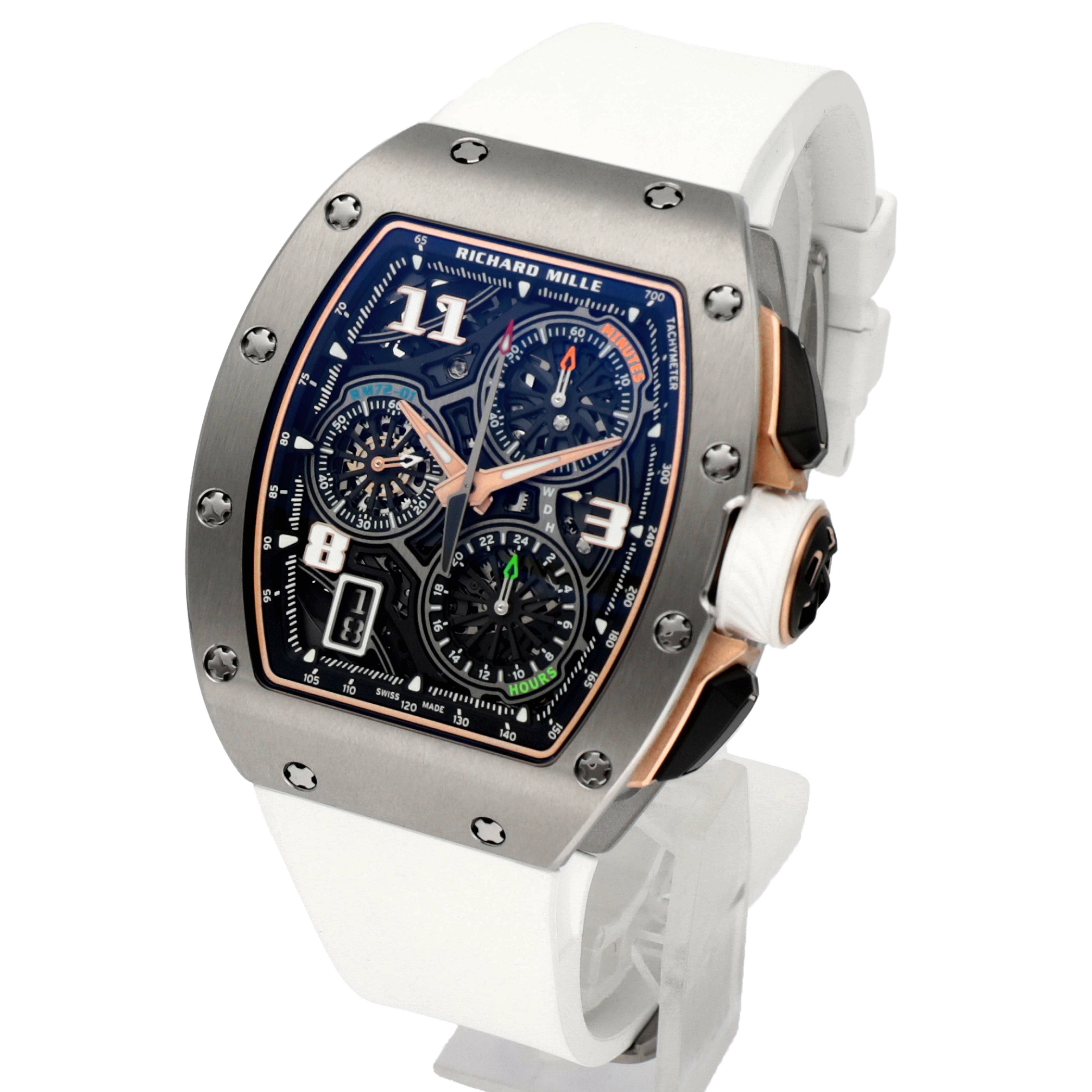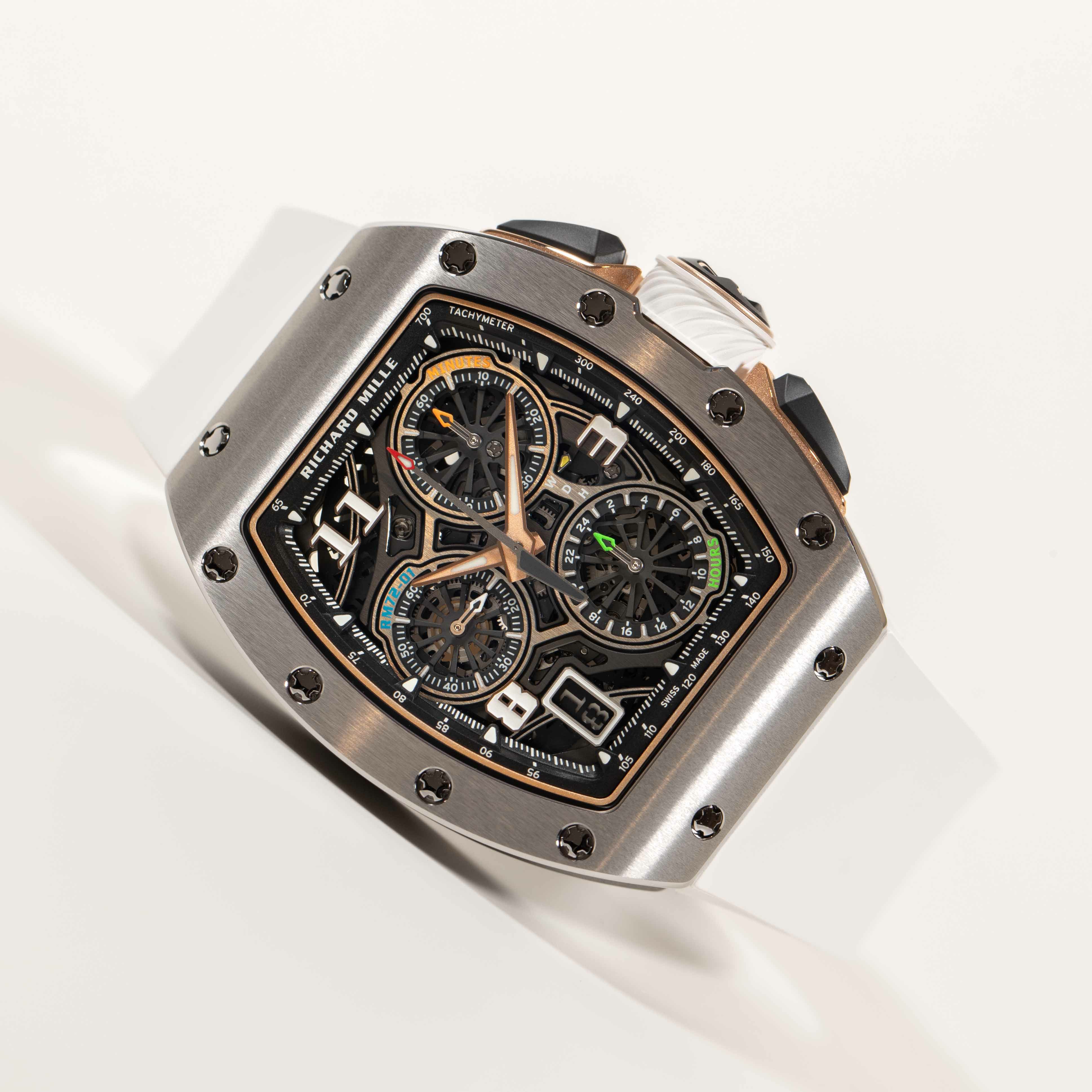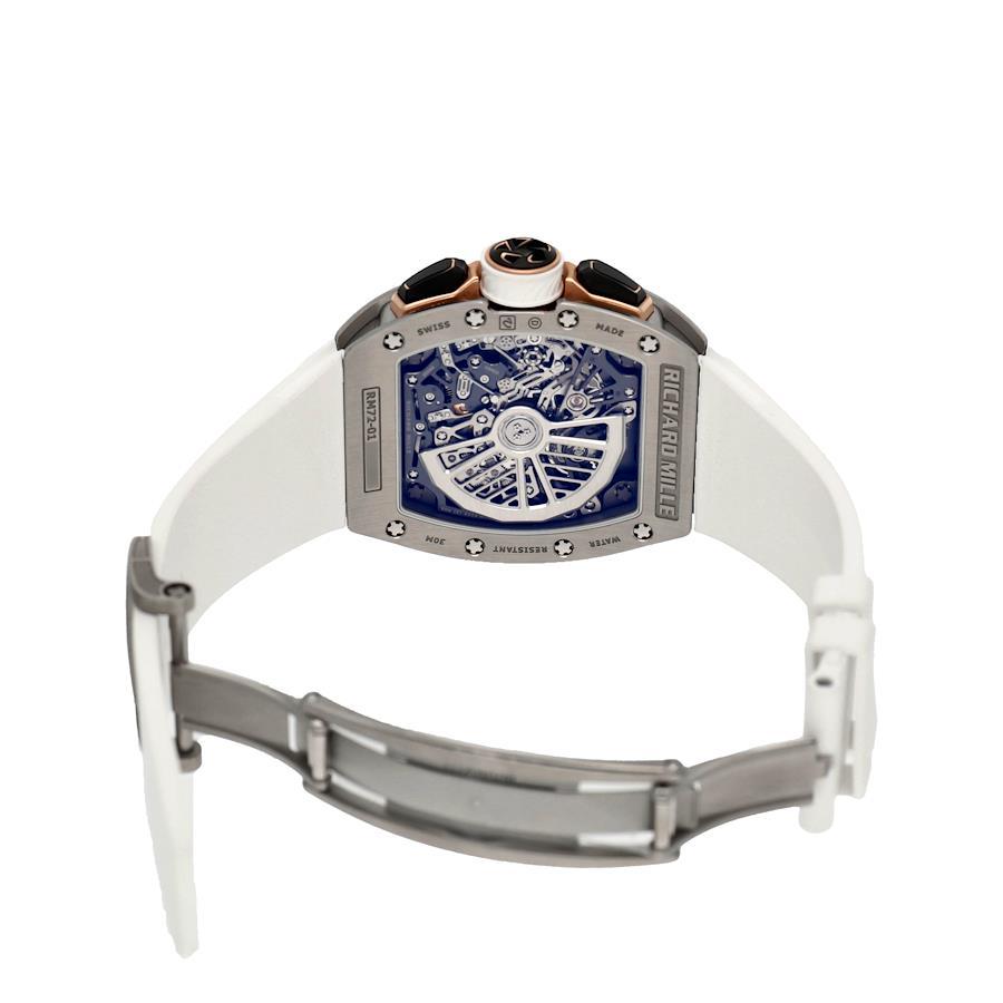 --------【商品スペック】--------お問合せコード:RM72-01 チタンブランド:リシャール・ミルケース素材:チタン×5Nレッドゴールドベルト素材:ラバーダイアルカラー:スケルトンムーブメント:自動巻き(CRMC1)ケースサイズ:47.34mm × 38.4mm (リューズ除く)防水:30mガラス:サファイアガラス仕様:バックスケルトン、日付表示、フライバッククロノグラフ付属品:純正BOX、国際保証書2025年保証:購入日より3年保証
