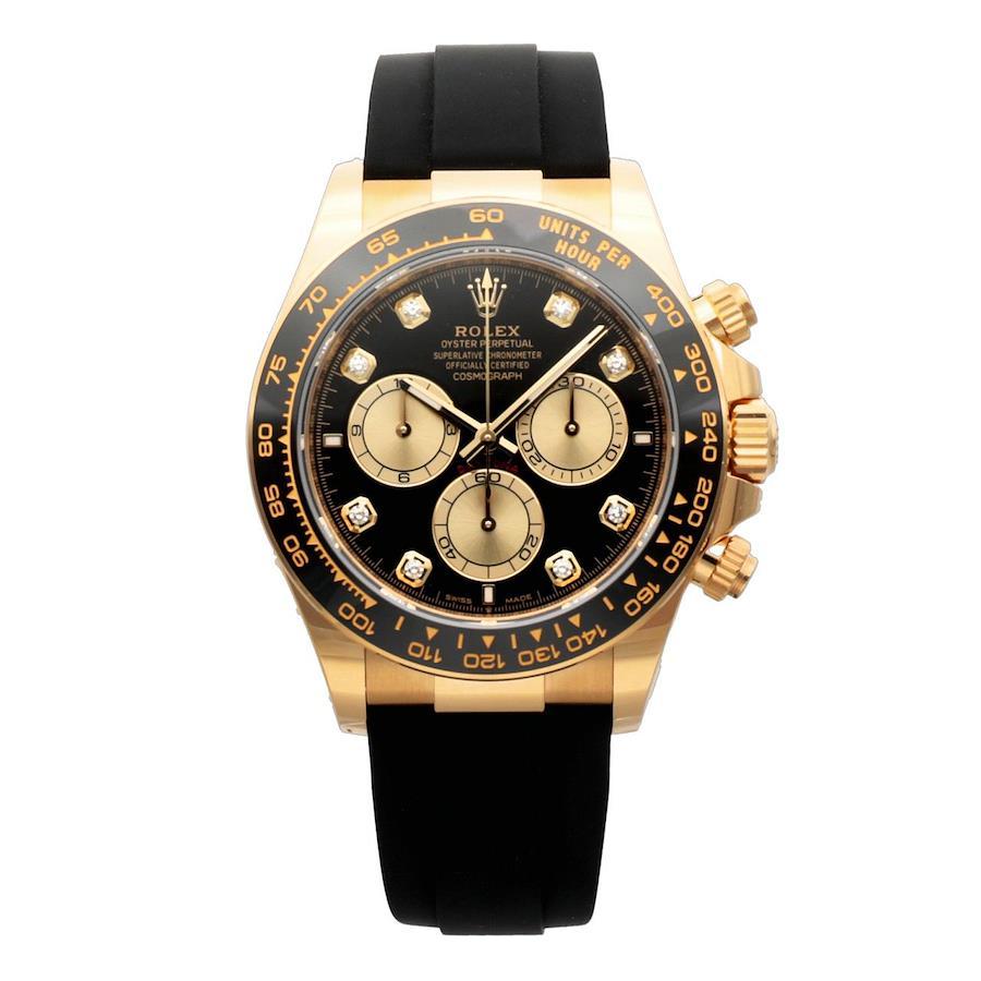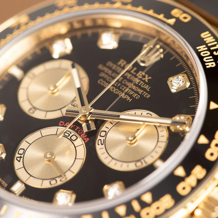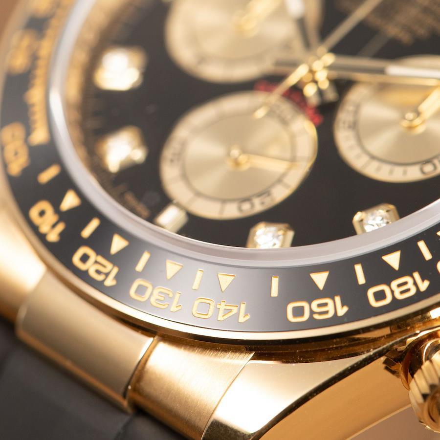 --------【商品スペック】--------お問合せコード:126518LN ブライトブラック&ゴールデン8Pダイヤブランド:ロレックスシリーズ:デイトナケース素材:イエローゴールドベルト素材:ラバーダイアルカラー:ブライトブラック&ゴールデンムーブメント:自動巻(Cal.4131)ケースサイズ:40mm(リューズ除く)防水:100mガラス:サファイアガラス仕様:クロノグラフ、スモールセコンド、30分積算計、60分積算計付属品:純正BOX、国際保証書(2025年10月)保証:購入日より3年保証