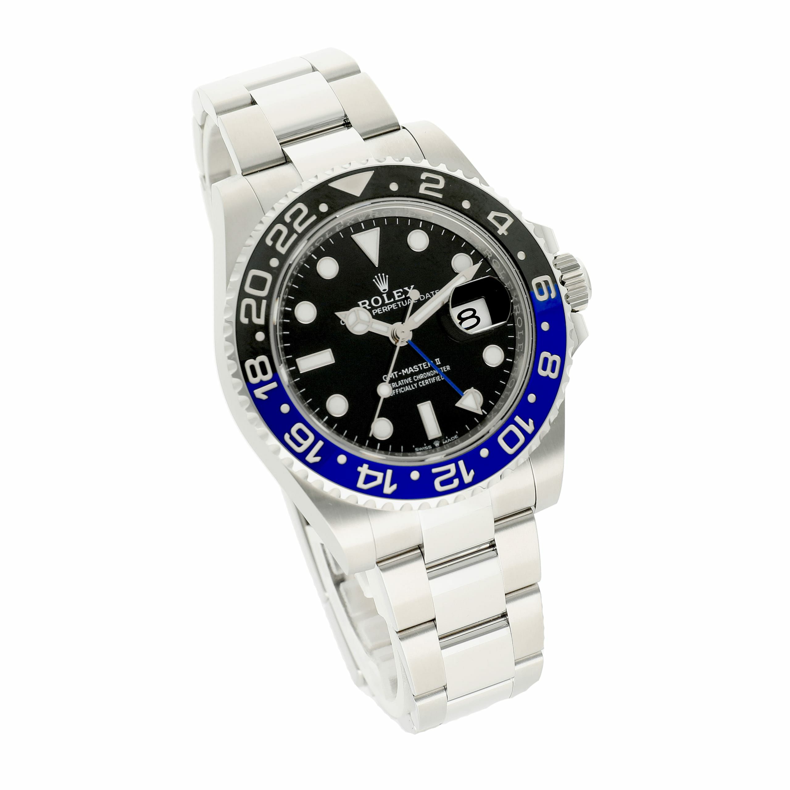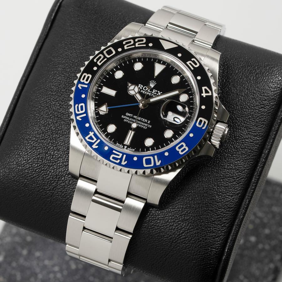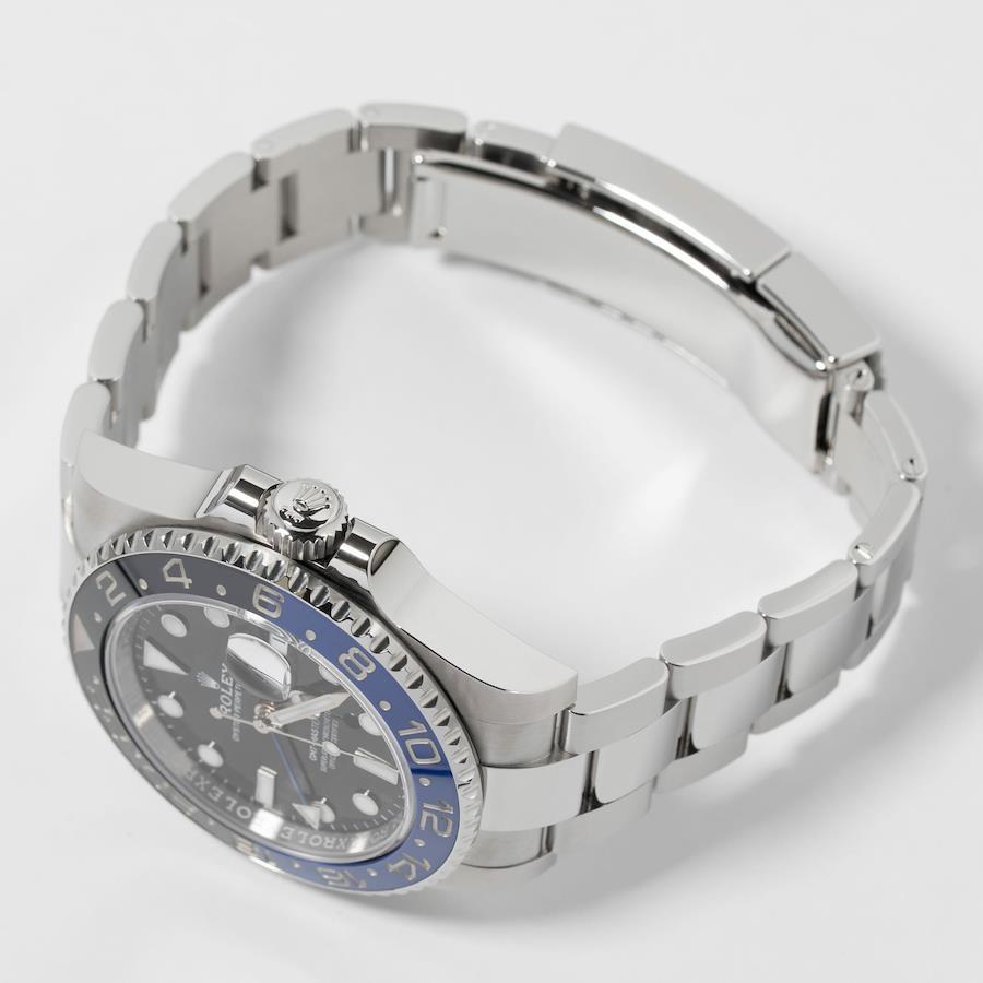 --------【商品スペック】--------お問合せコード:126710BLNR オイスターブランド:ロレックスシリーズ:GMTマスターⅡケース素材:ステンレススチールベルト素材:ステンレススチールダイアルカラー:ブラックムーブメント:自動巻(Cal.3285)ケースサイズ:40mm(リューズ除く)防水:100mガラス:サファイアガラス仕様:回転ベゼル、日付表示、GMT機能付属品:純正BOX、国際保証書(2025年9月)保証:当店購入日より3年保証メーカー参考価格:¥1,633,500税込1955年にパン・アメリカ航空との共同開発で発表されたGMTマスターは、ロレックスのトラベルウォッチとして絶大な人気を博しています。2021年に発表された最新モデルは、前作同様美しいブルーとブラックのセラクロムベゼルが特徴的で、通称「バットマン」として親しまれています。2019年の廃盤から待望の3連オイスターブレスが復活し、堅牢さと高級感を兼ね備えたデザインとなっています。カジュアルなオフの日からビジネススタイルまで幅広く対応可能な腕時計です。ムーブメントにはロレックス完全自社製造Cal.3285が搭載され、約70時間のロングパワーリザーブと耐衝撃性、に耐磁性能優れており、ロレックスの信頼性の高さがみえる腕時計です。