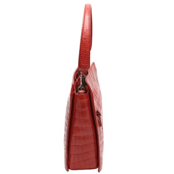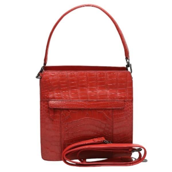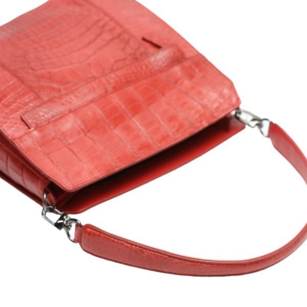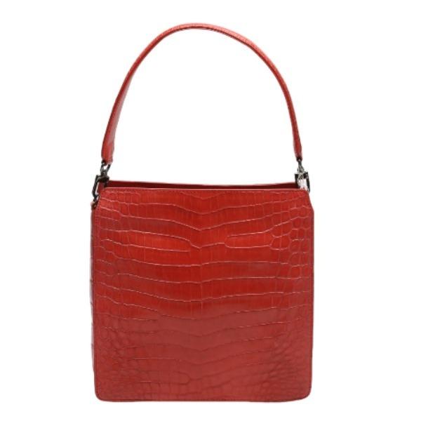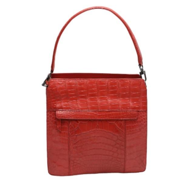 高級クロコダイル革を使用した独特の質感をご堪能頂けるハンドバッグです☆ポケットがたくさん付いていて、収納力もばっちり☆持ち運びやすいサイズで、大変使いやすいオススメの逸品です♪