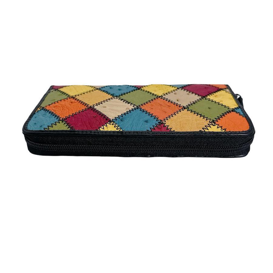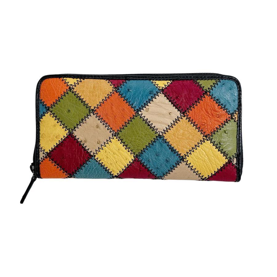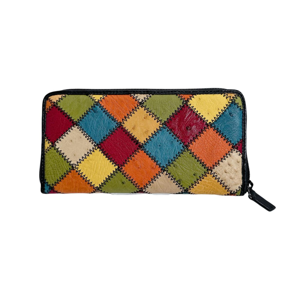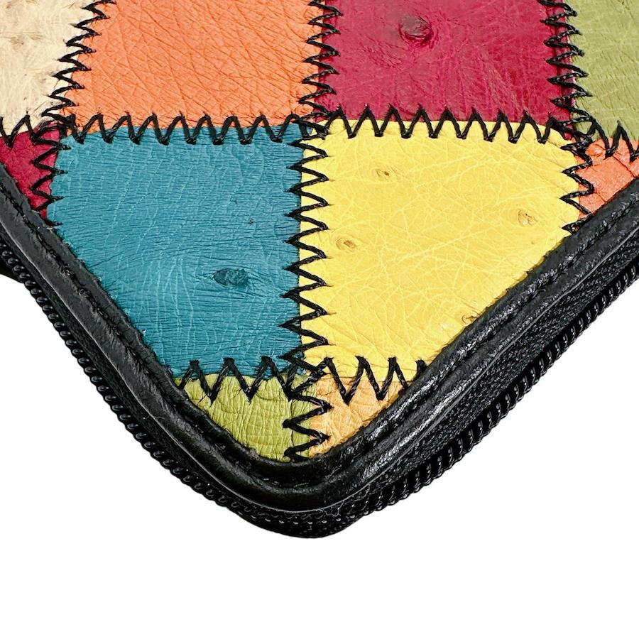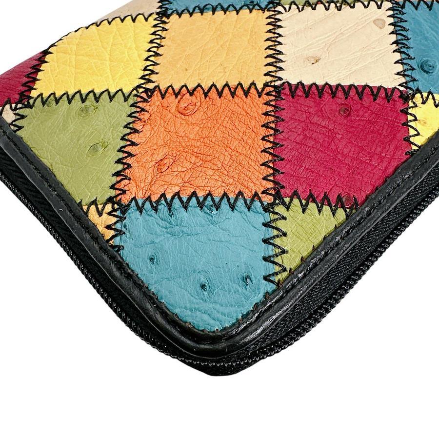 ☆パッチワークのオーストリッチラウンドファスナー長財布!豊富なカード用ポケットやセパレートされたお札入れなど収納力がとても高いお品です♪