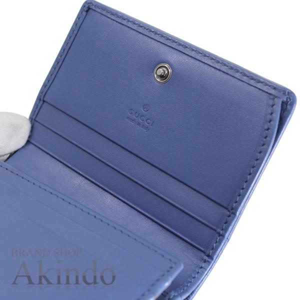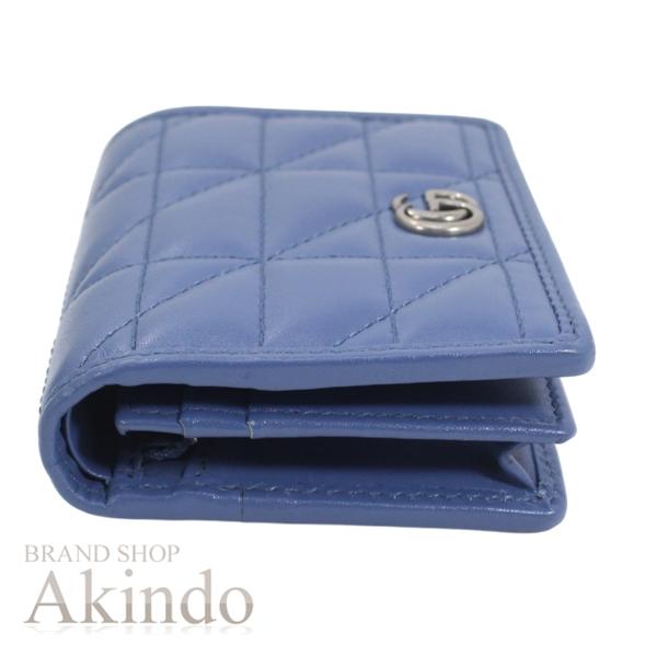 ◆ブランド グッチ◆仕様 〔GG マーモント〕二つ折り財布コンパクトウォレット◆素材 レザー◆色目 ブルー◆型番 466492◆程度 Sランク◆サイズ 約W11 X H8.5 X D3 cm◆付属品 箱・布袋・冊子◆ポケット数 小銭入れ×1(ファスナー式) ポケット×1カード入れ×5 札入れ×1商品詳細シェブロン キルティング レザーの〔GGマーモント〕 二つ折り財布小さなダブルG メタル ディテール付き コンパクト 二つ折りウォレット。レザーを使用しています。新品・未使用商品です。背面に保管の際の押し跡がございます。詳細は写真にてご確認下さい。T4326