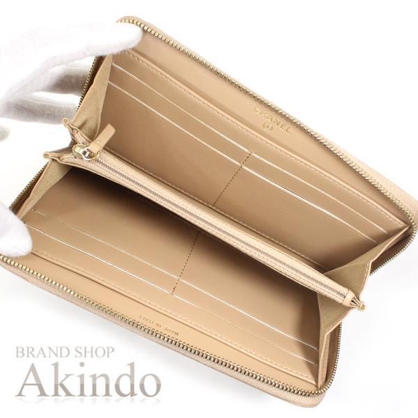 シャネルからキャビアスキンのラウンドファスナー長財布のご紹介です。