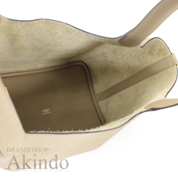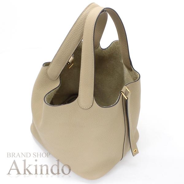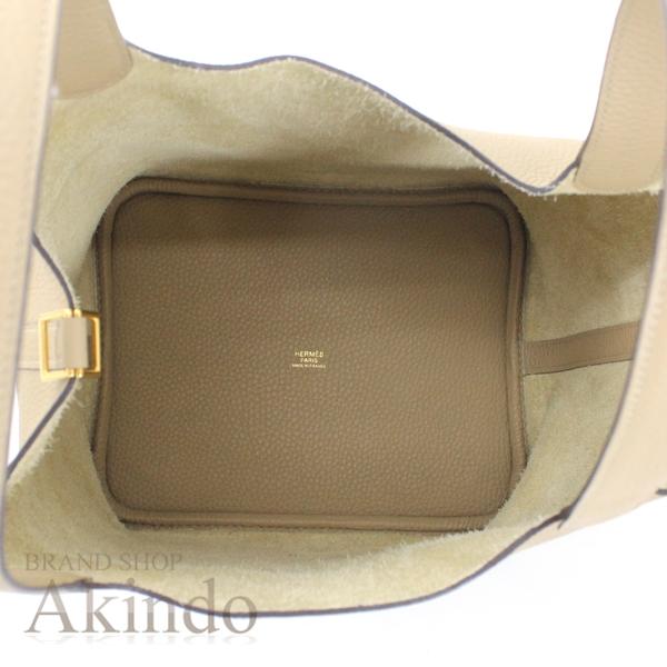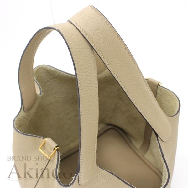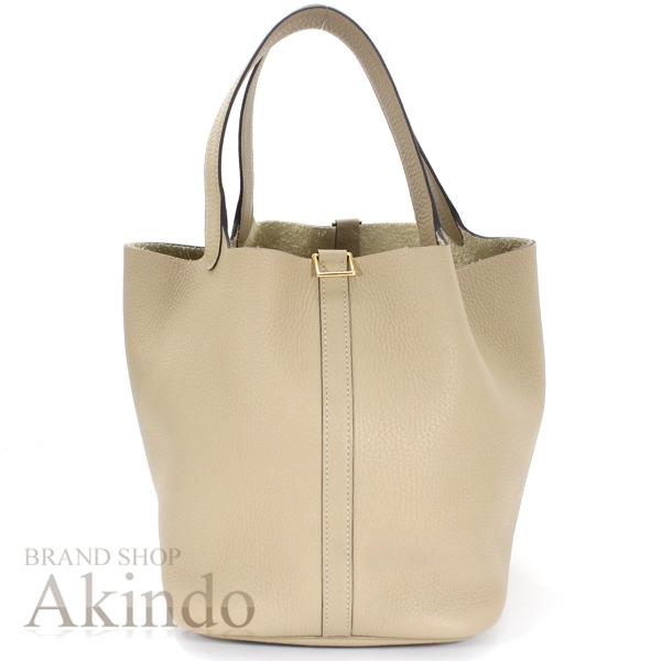 ◆ブランド エルメス◆商品名 ピコタンロックMM◆素材 トリヨンクレマンス◆色目 トレンチ×ゴールド金具◆サイズ 約W22 × H22 × D17cm◆製造刻印 Z刻印◆程度 SAランク◆付属品 箱・布袋・カデナ・鍵x2◆ポケット数 -◆商品詳細エルメスのバケツ型ハンドバッグ、「ピコタンロックMM」です。程よいサイズで収納力があるので普段使いにぴったりです。どんな服装にもマッチしやすい柔らかいカラーの「トレンチ」です。お出掛け・パーティ・ママ会・お買い物・送り迎え全般に使えます。使用感なくほぼ新品同様商品です。詳細は写真をご覧ください。T6006