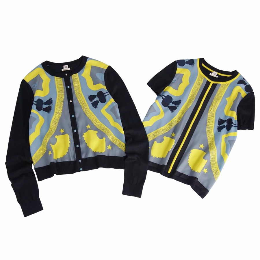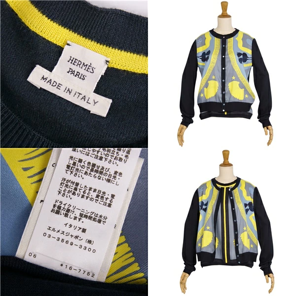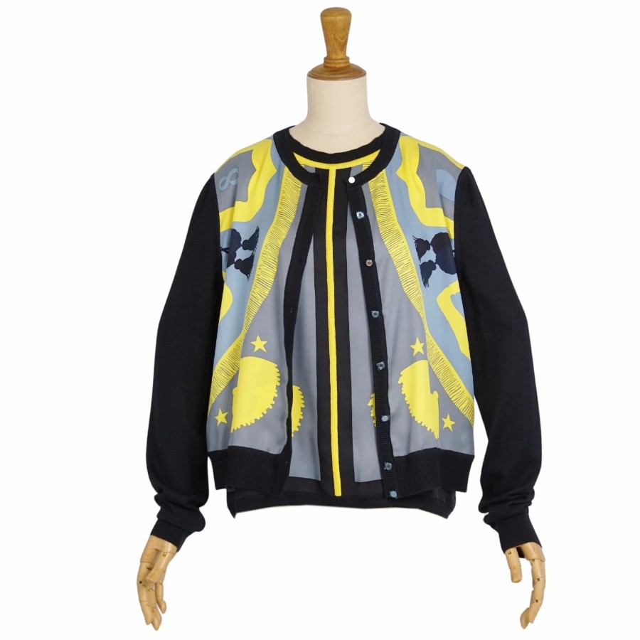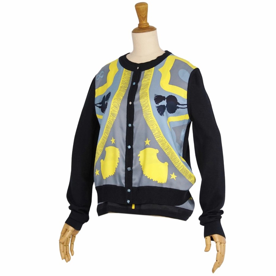 エルメス HERMES アンサンブル 21SS ニット カーディガン シルク切り替え トップス レディース フランス製 マルチカラー サイズ40(M相当)