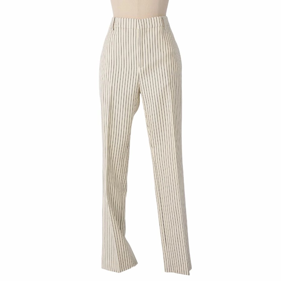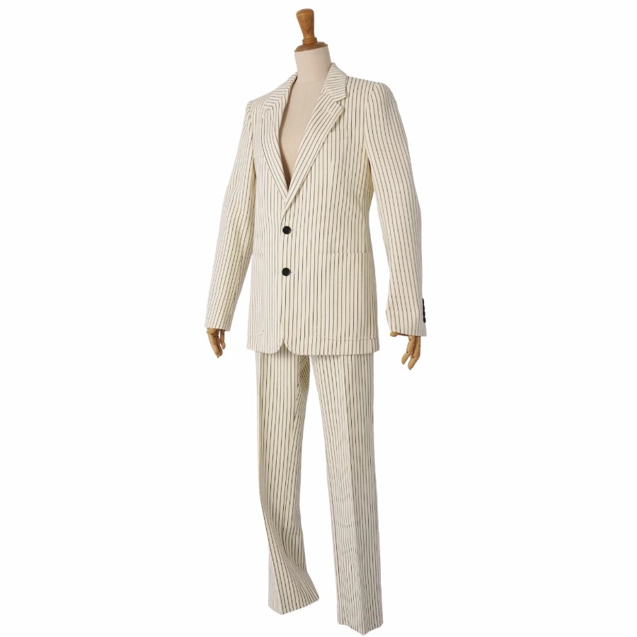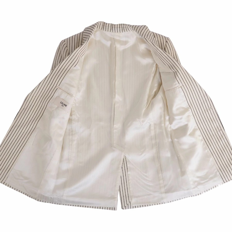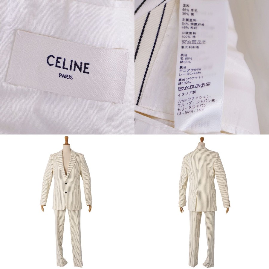セリーヌ CELINE セットアップ パンツスーツ テーラードジャケット スラックスパンツ ウール コットン ストライプ レディース アイボリー サイズ36(S相当)