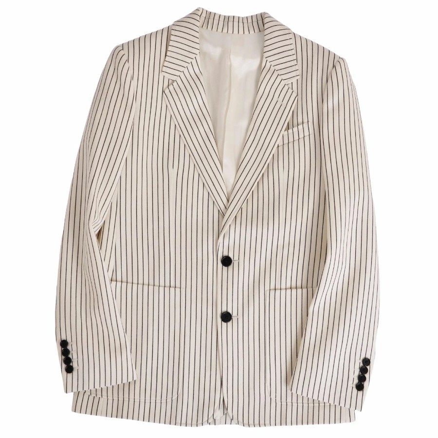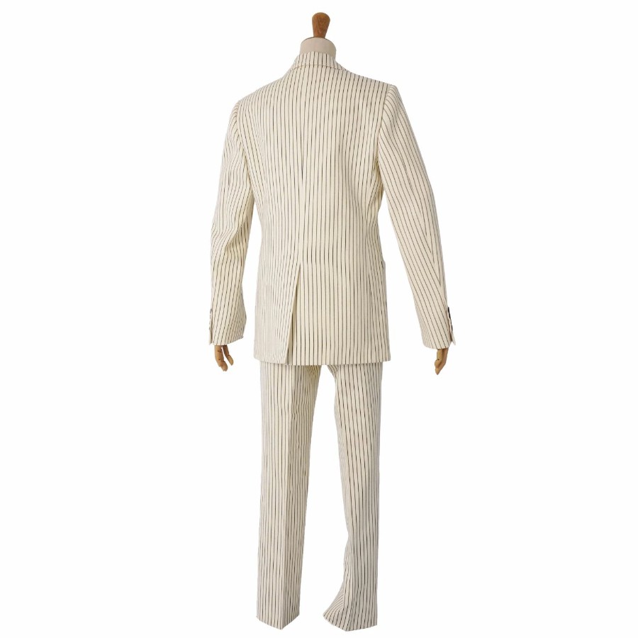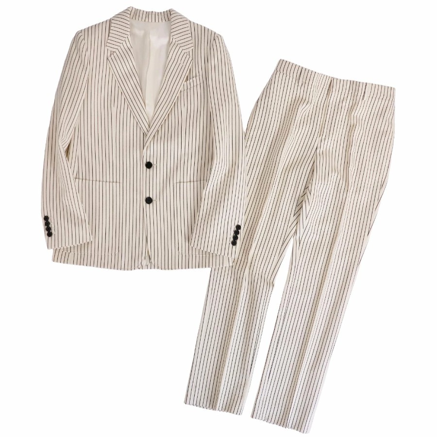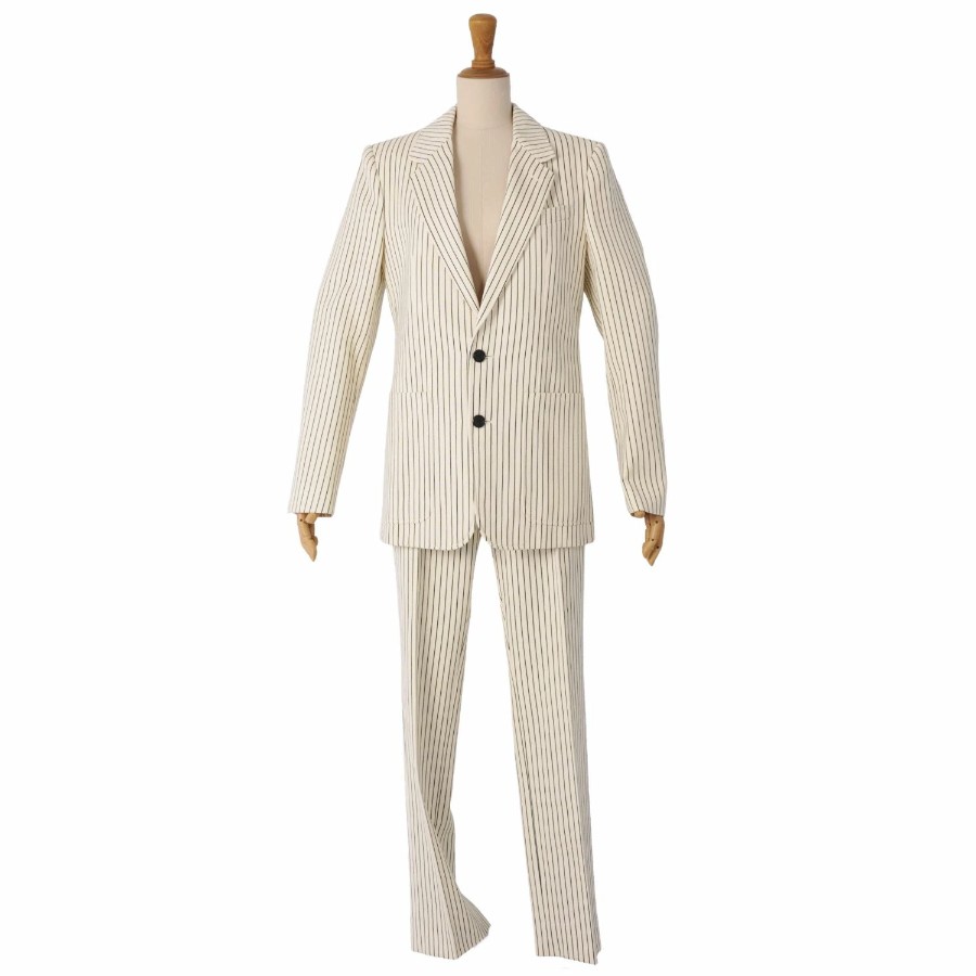 セリーヌ CELINE セットアップ パンツスーツ テーラードジャケット スラックスパンツ ウール コットン ストライプ レディース アイボリー サイズ36(S相当)
