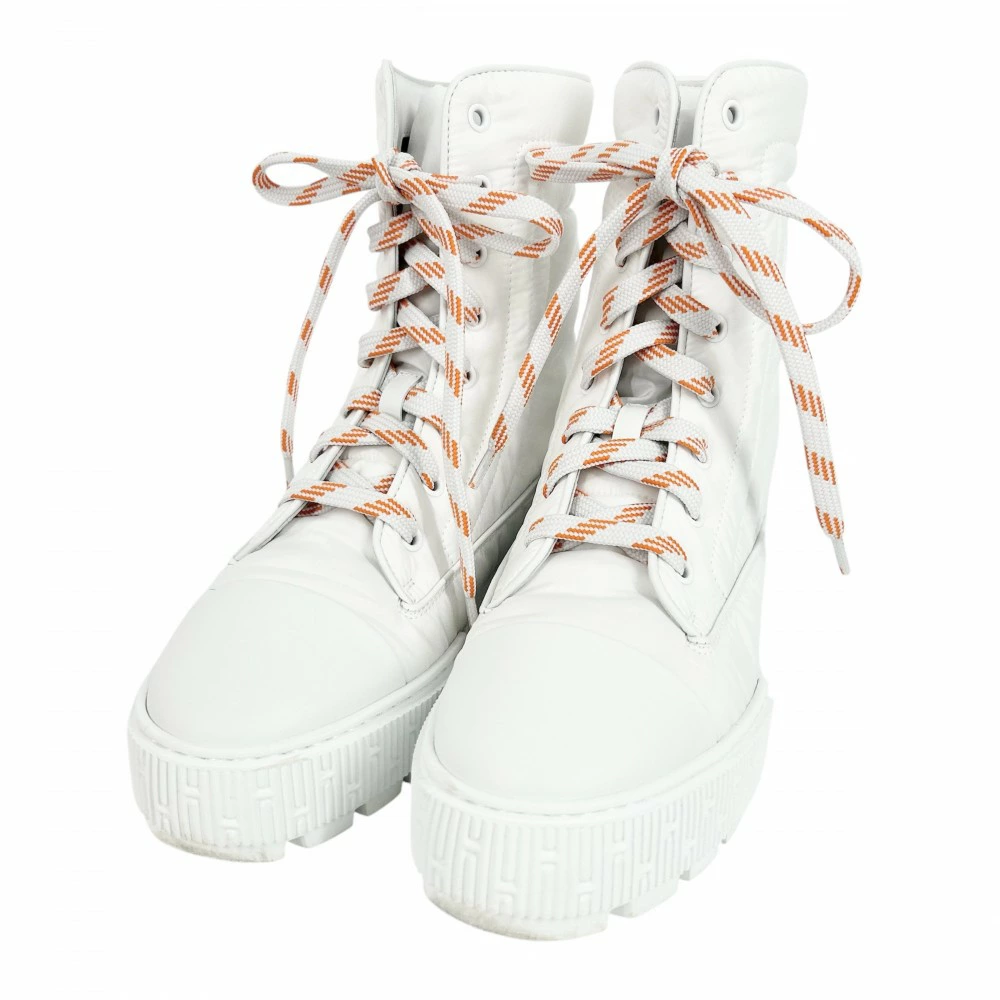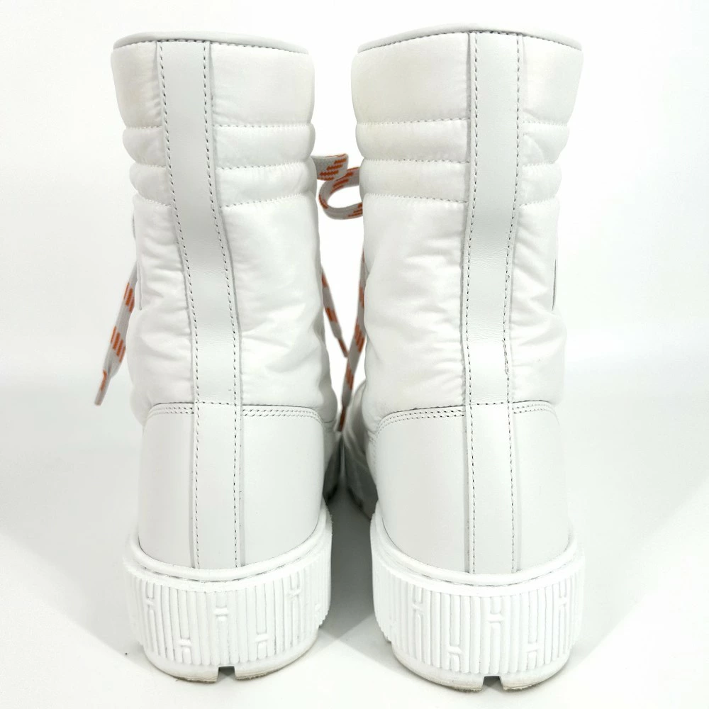 [Final Price] Hermès Women's Fresh Nylon Boots, Size 38, White/Orange, Spring/Autumn/Winter [Pre-owned]