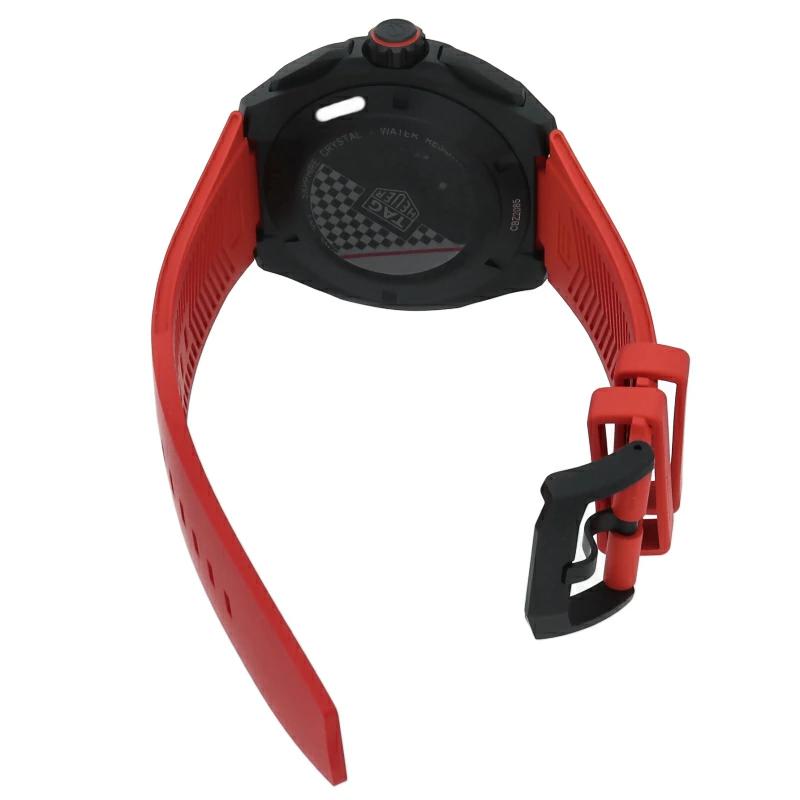 | タグ・ホイヤーの人気シリーズ「フォーミュラ1」。スポーティーでスタイリッシュなデザインで存在感のある1本です。ケースにはDLCコーティングを施したグレード2チタンを採用。鮮やかな赤い差し色がいいアクセントになっています。 |