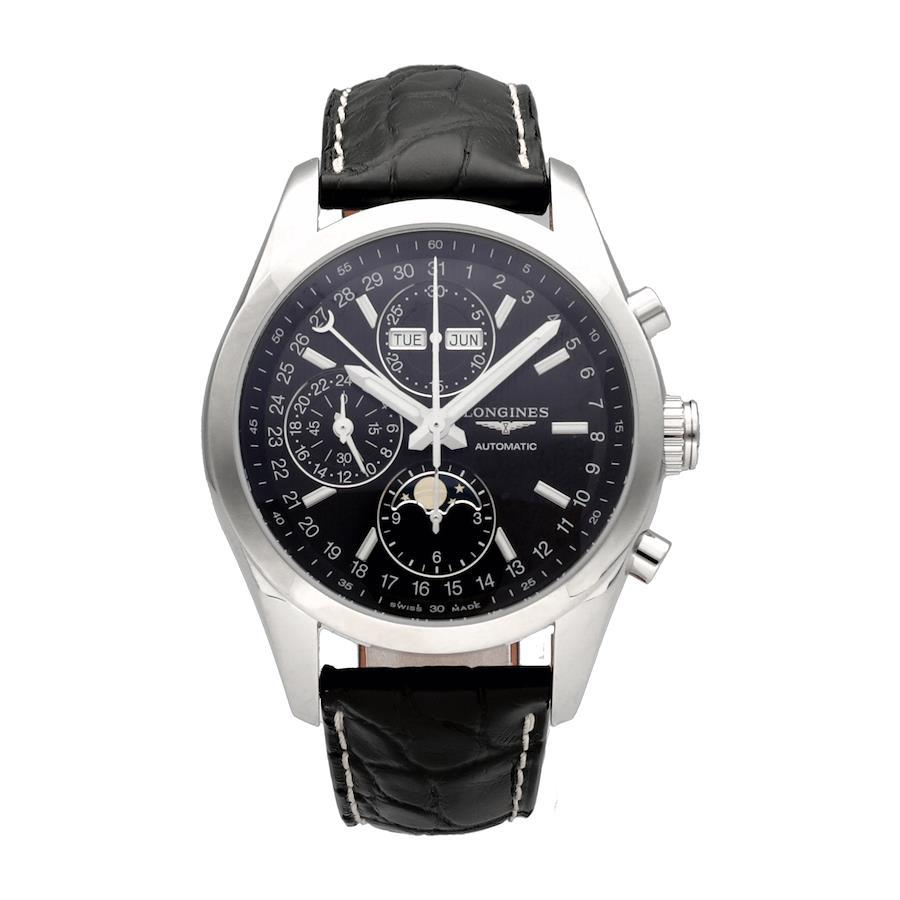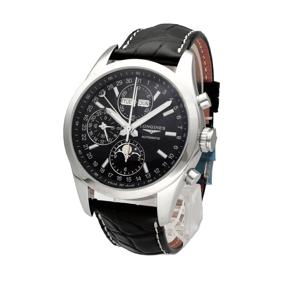 お問合せコード:L2.798.4.52.3ブランド:ロンジンシリーズ:コンクエストケース素材:ステンレススチールベルト素材:レザーダイアルカラー:ブラックムーブメント:自動巻ケースサイズ:42mm(リューズ除く)防水:日常生活防水ガラス:サファイアガラス仕様:バックスケルトン、クロノグラフ、トリプルカレンダー、ムーンフェイズ付属品:純正BOX、国際保証書保証:当店購入日より1年保証状態:、ケース部分に僅かに展示キズがある為、未使用としております。