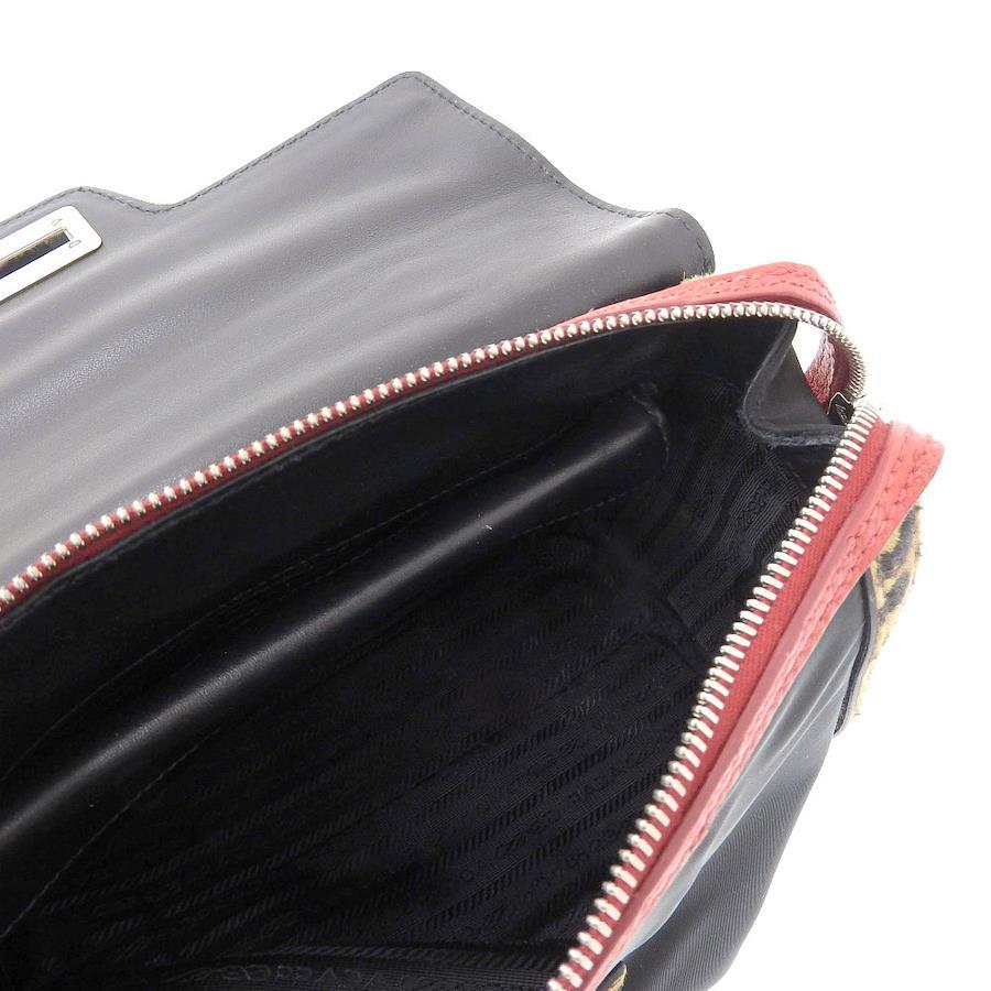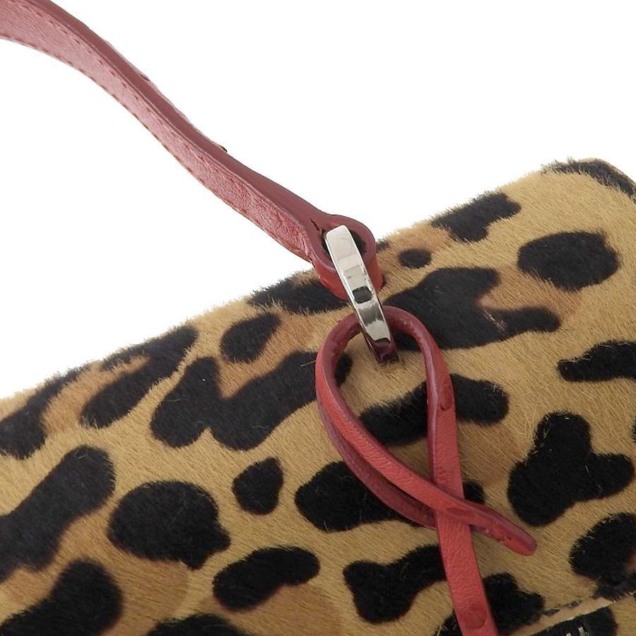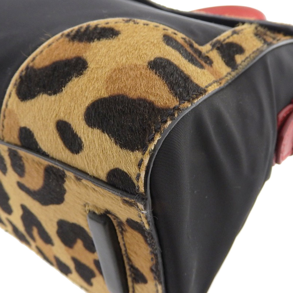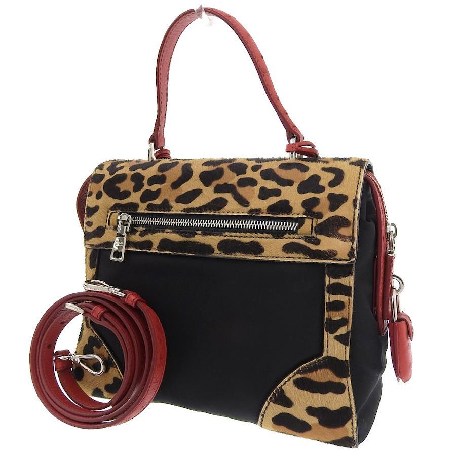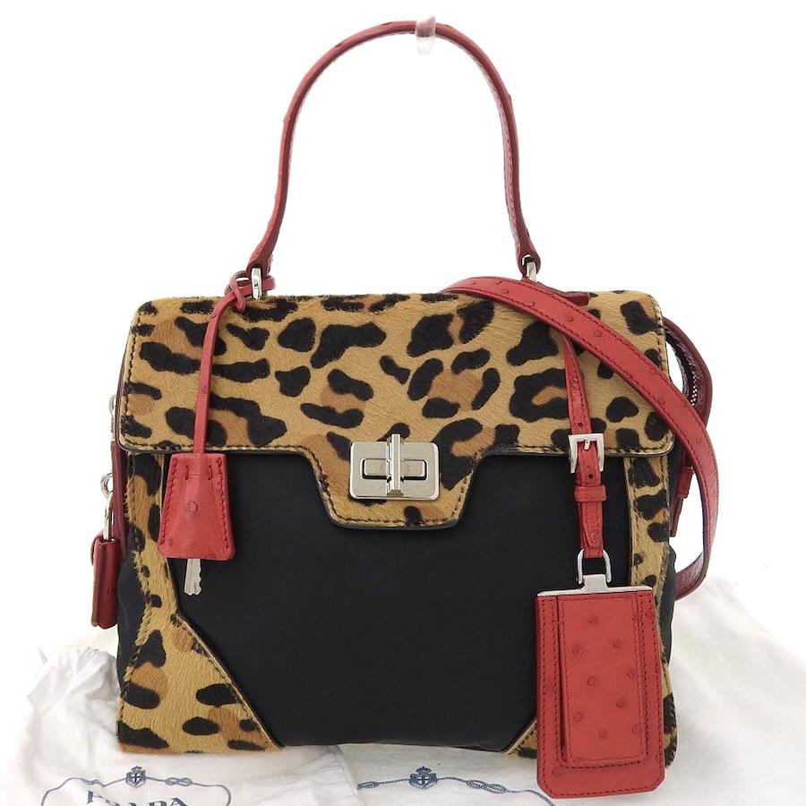 [Authenticity guaranteed] Comes with cloth bag. Beautiful Prada handbag, 2-way bag, leopard print, pony fur, ostrich, brown, red, 1BA023, rare [Used]