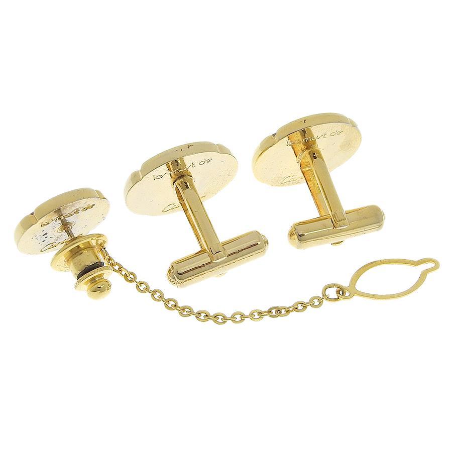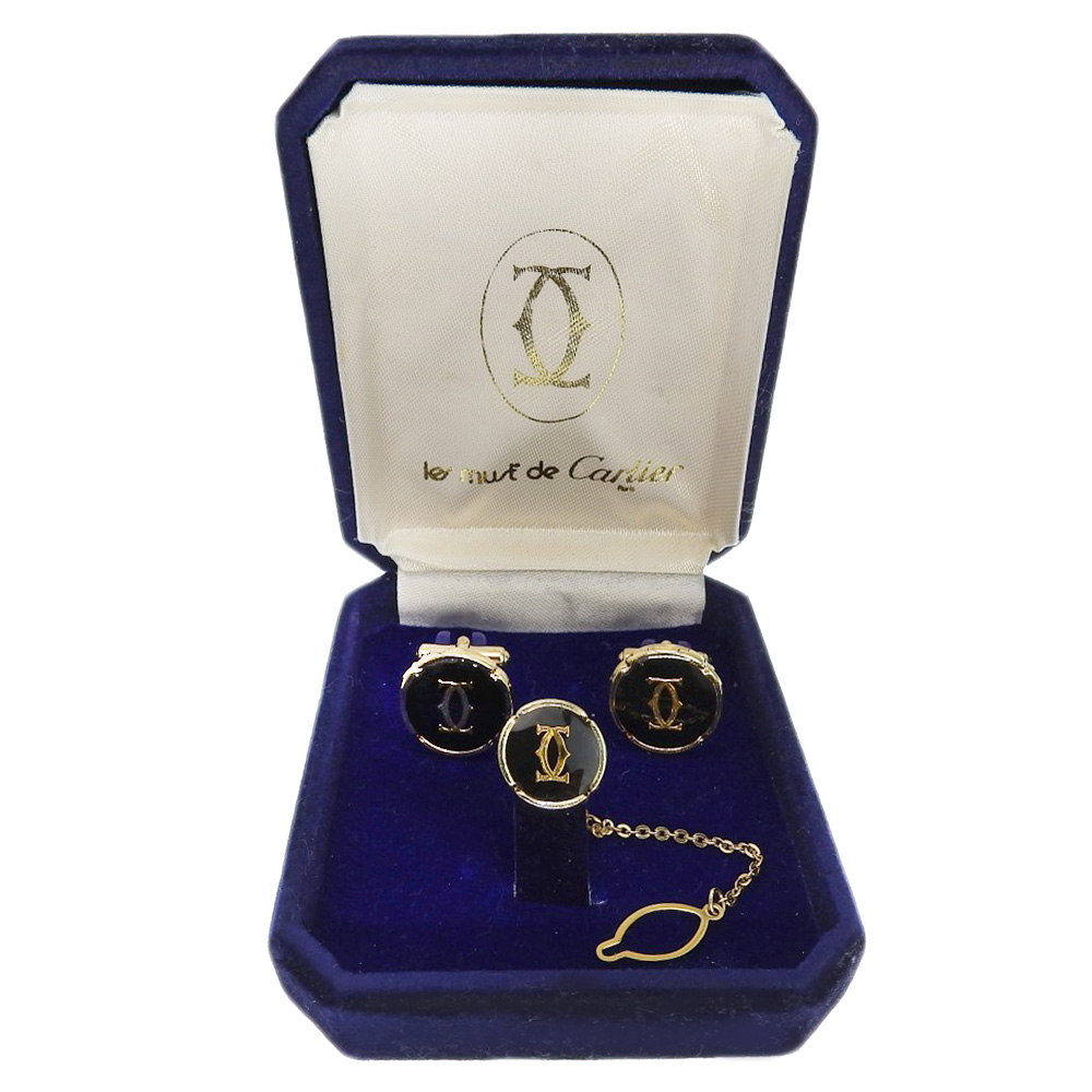 [Authenticity guaranteed] Boxed Cartier logo cufflinks and tie pin set, gold, black, tie tack, vintage [Used]